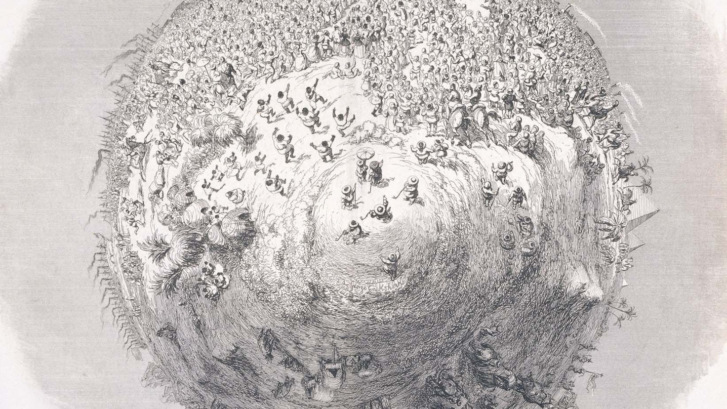 本展では、クルックシャンクの代表的な物語挿絵をはじめ、ロンドン下町での日常風景や社会的時事、最新ファッションなどの諷刺版画ほか約200点を紹介。諷刺画から挿絵への過渡期に生き、才能をふるったクルックシャンクの作品世界に迫る。