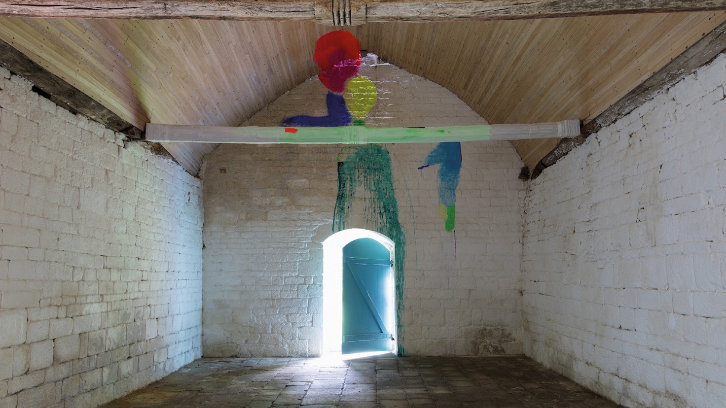 大胆で即興的な身振りを思わせるペインティングで知られる湊。実際は、制作する地で目にした風物を書きとめたスケッチをもとに、綿密なリサーチを伴った観察から出発し、様々な文明の起源に遡って、それらの痕跡や歪みを再び浮かび上がらせている。
