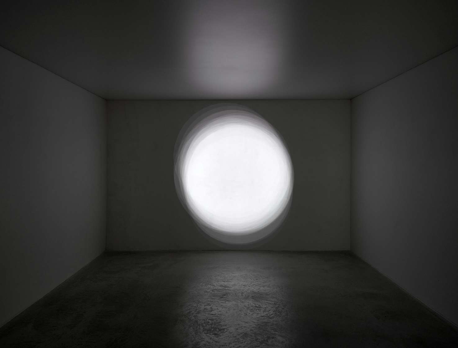 《円》は約6メートル幅の展示壁全面に投影され、展示室全体が揺れ動くようなインスタレーションとなる。