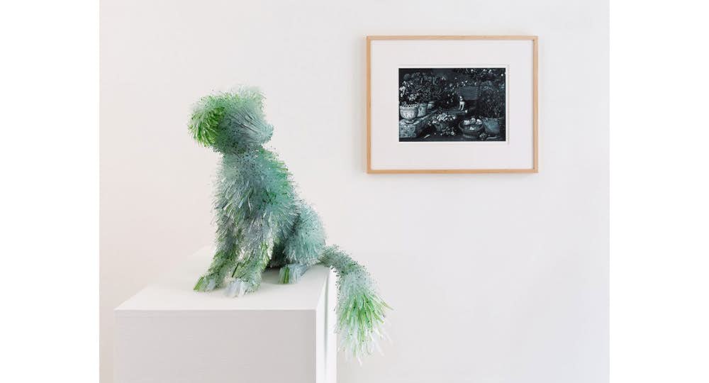 クロノフスカは1964年ワルシャワ出身。ヨーロッパの名画に描かれる動物や靴をモチーフに作品を制作。インクジェットプリントした元の絵画と同空間に展示される彫刻は、同系色の無数のガラス片からなり、過去と現在、理想と現実、美しさと危うさといった様々な要素を兼ね備え、人間の奥深くに潜む情感をも表現している。