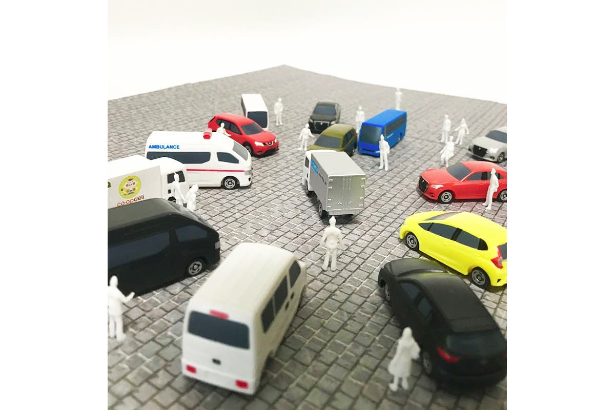 今回発表する作品《突然の風景(Sudden View)》は、屋外の公共空間にて、短時間で発表する、車と音を使ったインスタレーション作品。1音ずつ音階が設定されたクラクション音が割り当てられた車16台が公園のグラウンドに集まり、ひとつの音楽を奏でるというもの。