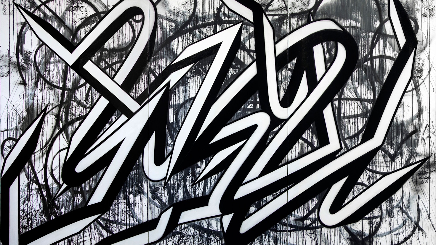 ニューヨーク・ブルックリンを拠点に活動するアーティスト・大山エンリコイサム。都市の地下鉄や壁に名前を書くエアロゾル・ライティング(グラフィティ)の文化に影響を受け、2012年より渡米。ライティングの視覚言語から文字を取り除き、線の動きのみを抽出し、反復・拡張させた「クイックターン・ストラクチャー」と呼ばれるモチーフを軸に、これまで世界各地で壁画制作や個展を開催してきた。このほか、著書『アゲインスト・リテラシー─グラフィティ文化論』(LIXIL出版、2015)の刊行や、コム・デ・ギャルソン、シュウ ウエムラとコラボレーションするなど、多角的に活動を続けている。