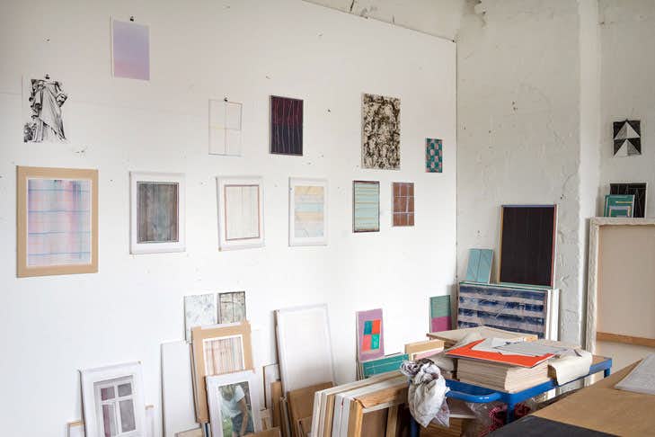 色のブロックと交差する直線からなる抽象絵画を描くドイツのアーティスト、ピウス・フォックスの日本初個展が開催される。
