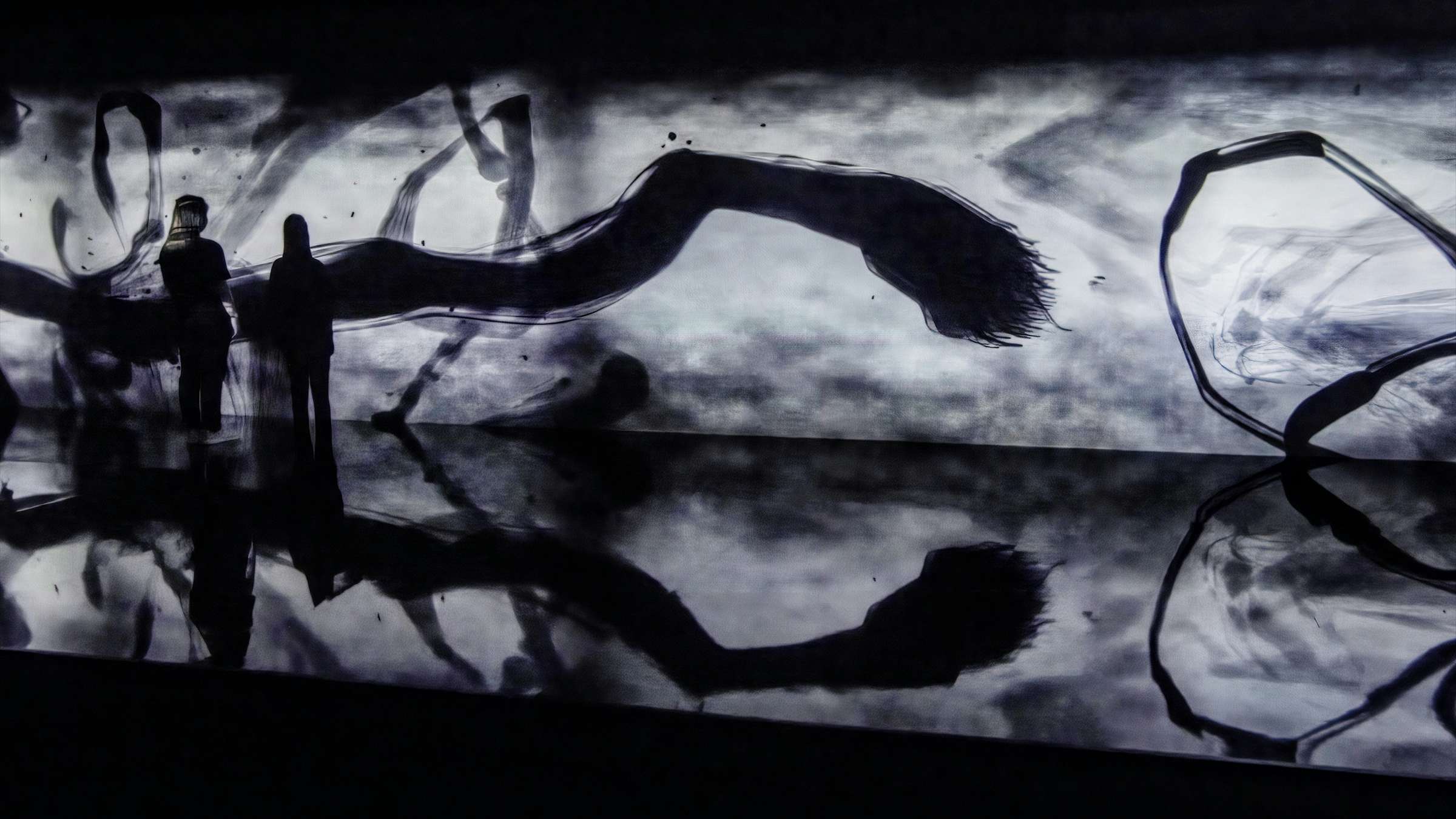 本展では、ひとつの連続した波がたゆたうインスタレーション《Black Waves: 埋もれ失いそして生まれる》と、来場者のふるまいの影響を受けながら変容し続ける空間《永遠の今の中で連続する生と死、コントロールできないけれども、共に生きる》をはじめ、空間に書く書「空書」が作品空間の中を回転する《反転無分別 - Black in White》、来場者が描いた花々が、壁に群生し広がっていく《グラフィティ フラワーズ ボミング》を展示する。