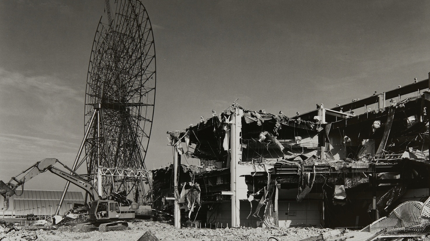 その後、ドイツにて遭遇したベルリン大劇場、壊すことを前提につくられたつくば科学万博パビリオン、劇場や競馬場、映画館の解体などを撮影した宮本。「『もの』としての建築の本質」を探求し、変貌する都市と建築を凝視した作品群は、86年の個展「建築の黙示録」で発表され、88年に同名作品集として出版された。解体による空間の変質そのものを正面からとらえた批評性を評価され、香港の高層スラム建築を舞台にした「九龍城砦」シリーズ(1989年に展示・出版)とあわせて、木村伊兵衛写真賞受賞を果たした。