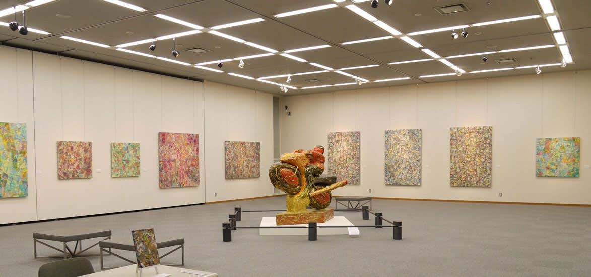 本展では、日本古来の染色技法のひとつ「墨流し」の、水の動きと風の作用を応用した平面作品「Vortex(渦流)」シリーズ、また、立体作品群からなるインスタレーション《The Eagle Has Landed(鷲は舞い降りた)》の再現展示によって構成。時代によってテーマも制作方法も異なる作品で中西の制作の変遷をたどり、過去と現在とが交差する風景(時空間)を創出する。