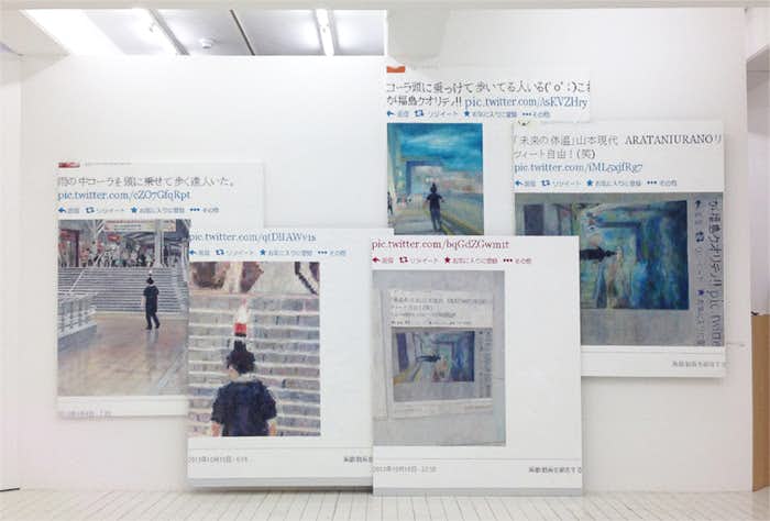 浦川は福岡県を拠点に活動。iPhoneを通して取得した情報や身体感覚をもとに、現代社会の風景を覗くための窓として、仮想空間を思わせる絵画作品を描いている。加茂は、2011年の東日本大震災以降、「絵画」と「生き延びる」ことを同義にとらえ、心象と事象を織り交ぜながら「私」と「社会」が相対的に立ち現われるような絵画作品を制作。そして竹内は、絵画、映像やインスタレーションなど様々な表現手法によって、現代におけるメディアの持つ意味やその深層に迫ろうとしている。