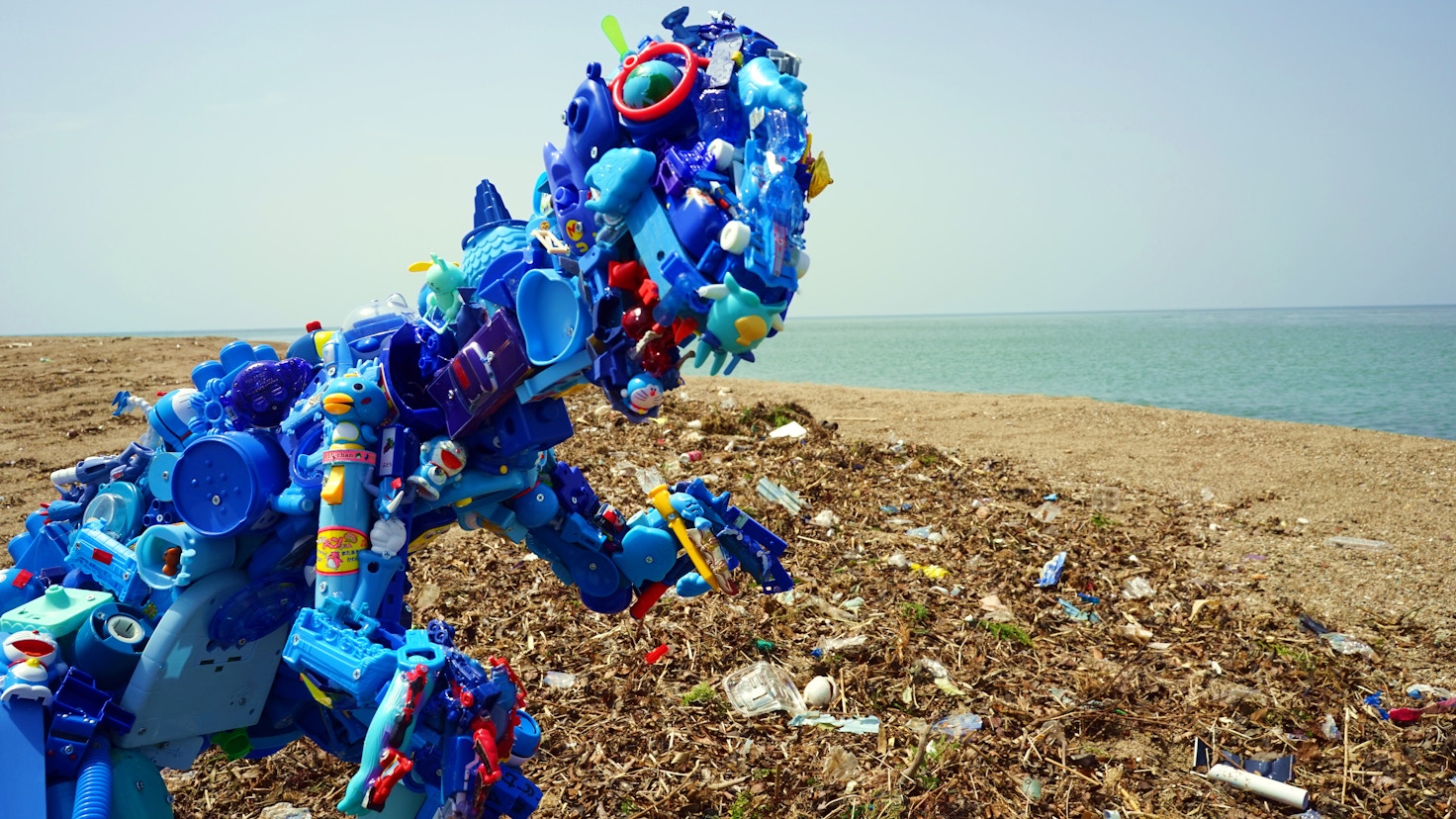 本展では、「かえっこ」で残り続けたおもちゃからなるオブジェ《ToySaurus》やプラスチックの小さな破片を集めて色分けした集合体《Ginjo》のほか、オブジェをもとに制作した新作平面作品などを展示し、無視することのできない素材の蓄積を露呈しつつ価値転換を行う。