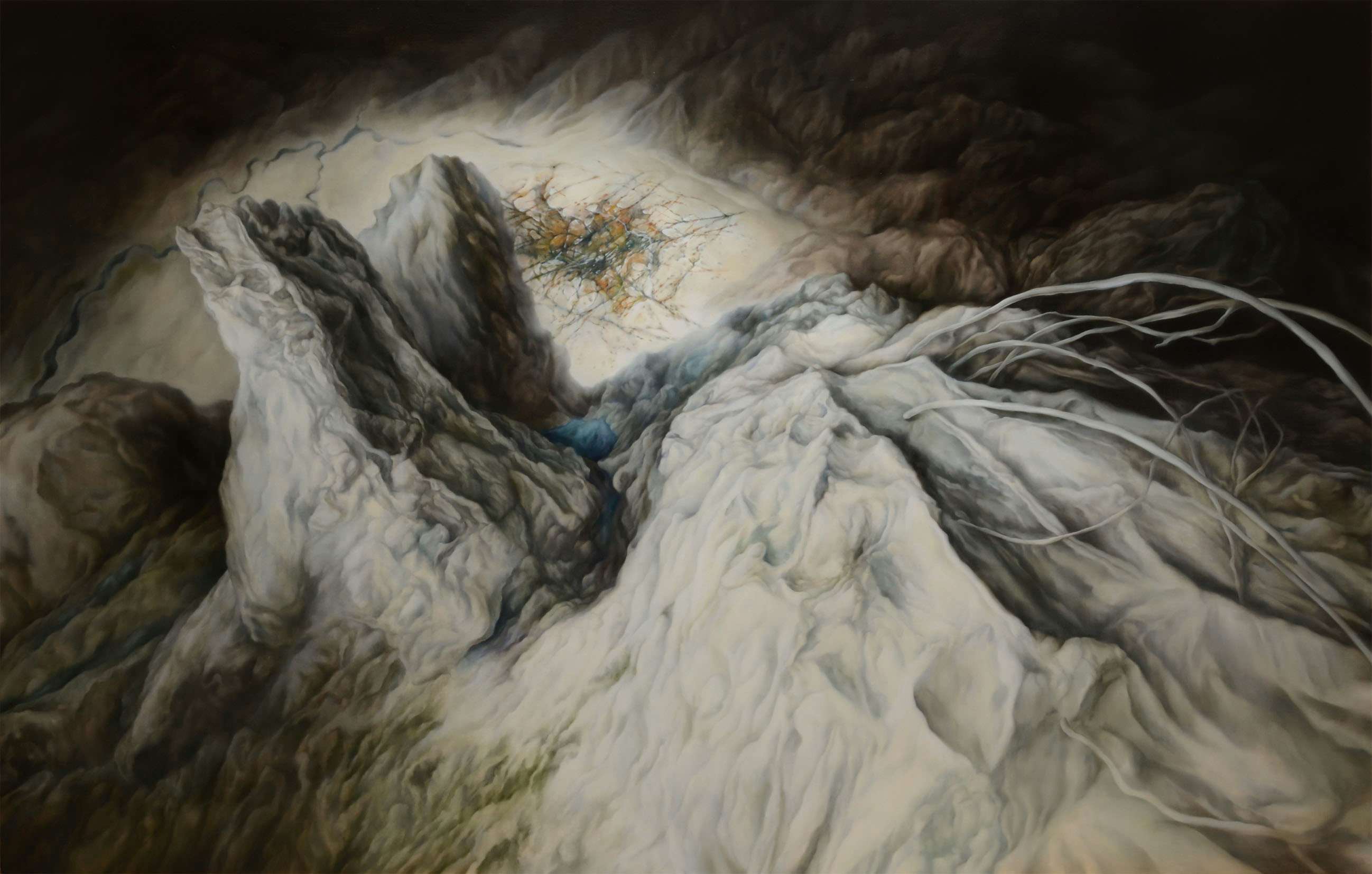 本展では、幅2.3メートルの大作を含む油彩画10点を展示。虚構の風景をモチーフとした油彩画は、見る者の風景のとらえ方を揺さぶる。