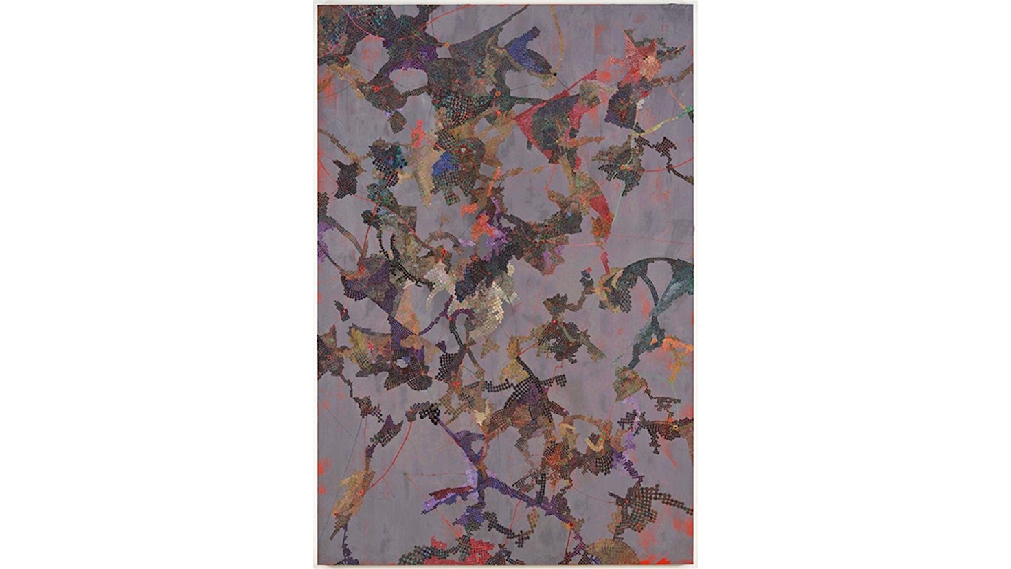 本展では120号の大作をはじめ、約90点におよぶドローイング、立体作品も展示。三連の最新作「Signals」は、偶然性にゆだねながらも、自身の身体のスケールを「尺度」として、複数のシナプスのようなかたちを形成しながら、二次元平面に四次元の時空を表出させる。