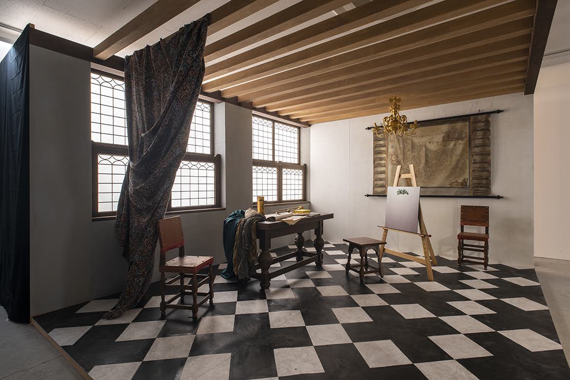 これまでフェルメールの《絵画芸術》《真珠の耳飾りの少女》をテーマにした作品を発表してきた森村が、今回変身するのは《牛乳を注ぐ女》。会場には、森村によるフェルメール3部作と各作品の関連資料や映像に加え、撮影で使用されたフェルメールの部屋のセットも展示され、自由に出入りすることができる。