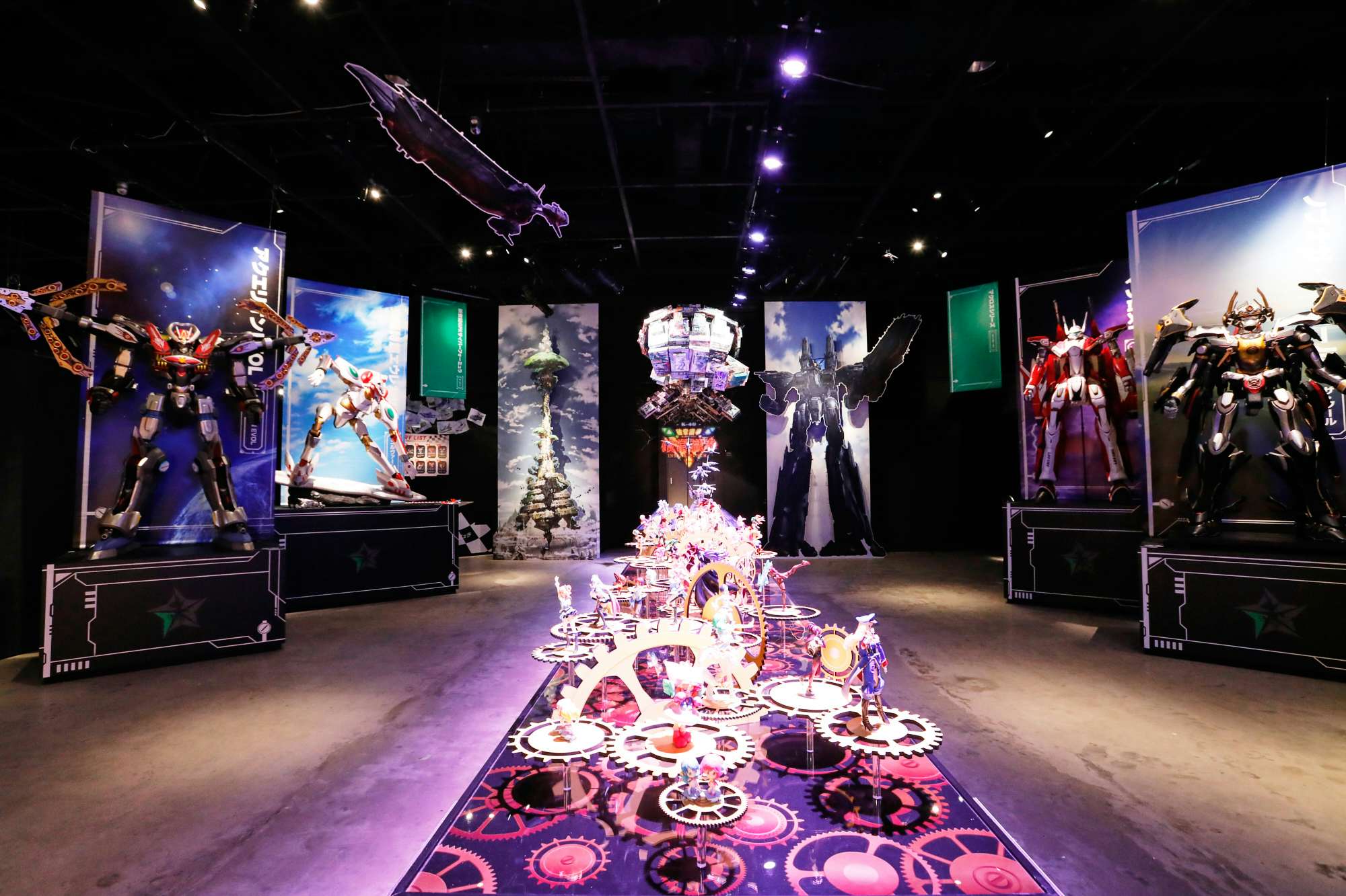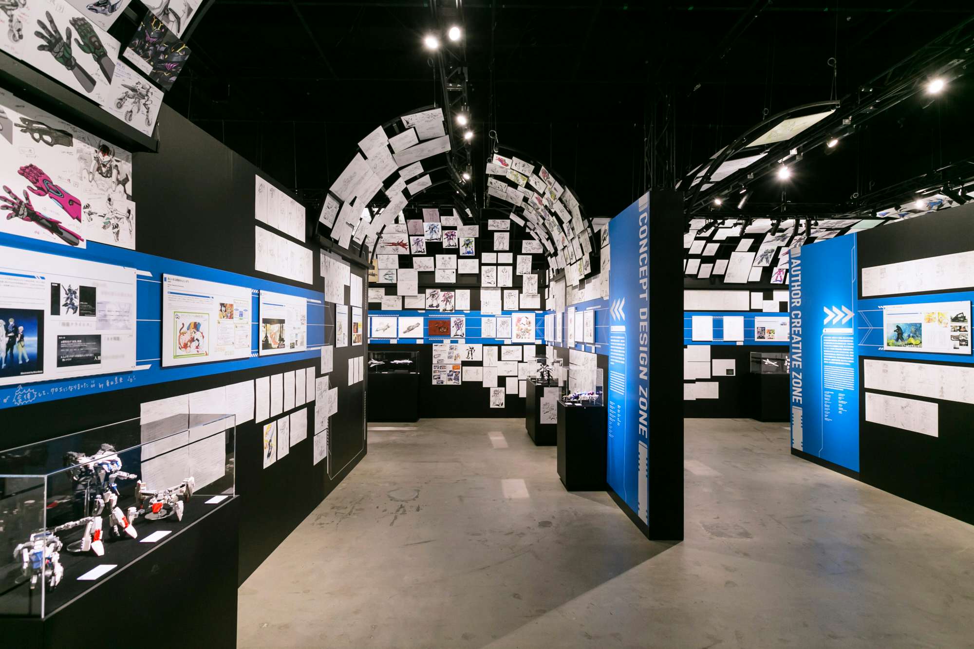 会場は巨大メカの立像やキャラクターフィギュアなど、作品誕生と密接な関係にある「立体物」を体感できる「メインパビリオン」、膨大な量の企画書やアイディアノート、絵コンテなど貴重な初公開する「クリエイティブパビリオン」のほか、「インスピレーションパビリオン」「フューチャーパビリオン」で構成。会場内のショップでは、限定生産のプラモデル、描き下ろしイラストを使用したオリジナルグッズなど様々な商品が販売される。