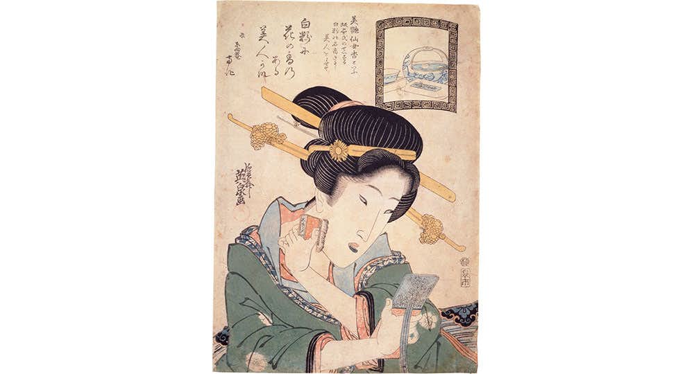 当時の化粧も現在よりシンプルで、紅の赤、白粉の白、お歯黒の黒の三色が基本であった。そうした制約の中でも女性たちは自分なりに工夫をして化粧や髪型を楽しみ、その様子が描かれた同時代の浮世絵からは、現代にも通ずる女性の美へのこだわりと心情などを読み取ることができる。