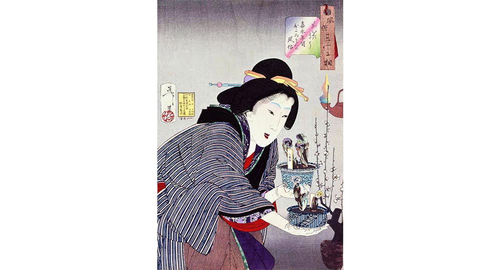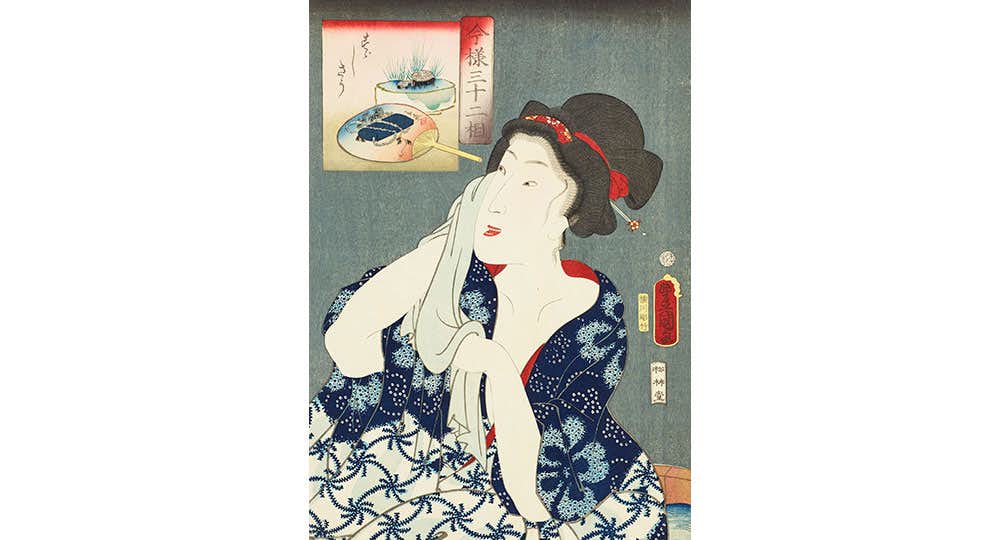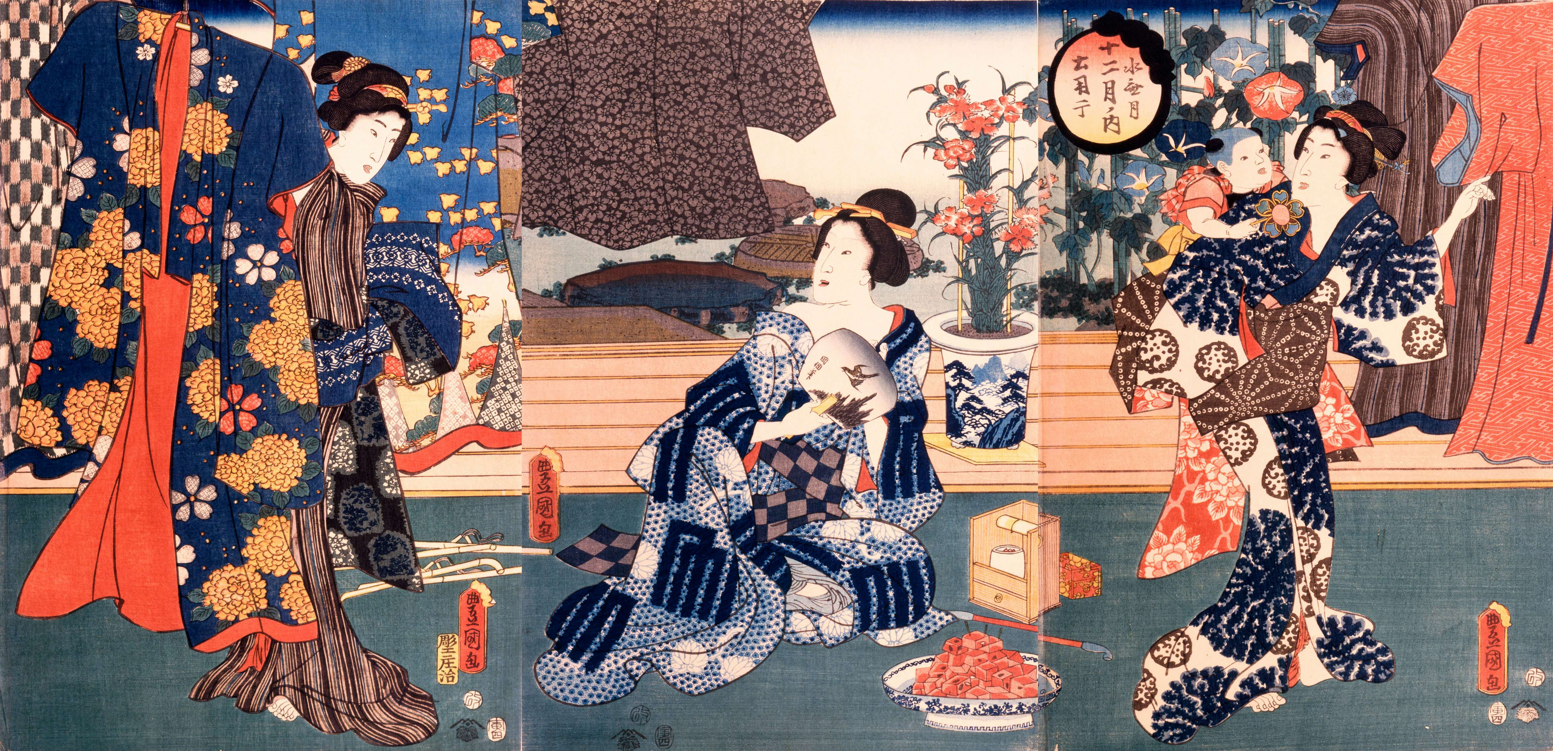 空や海の美しさをイメージさせ、江戸時代の人々の暮らしを涼やかに彩った「青」。浮世絵にも暮らしのなかに青を取り入れた江戸市民の姿が数多く描かれている。