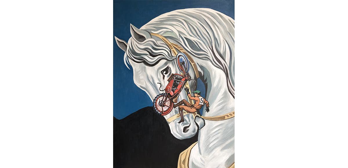 本展では、ユアサエボシが幼少期に見たというサーカスの記憶をもとに描いた新作《曲馬考》を発表。また、これまでの代表的なシリーズもあわせて展示する。