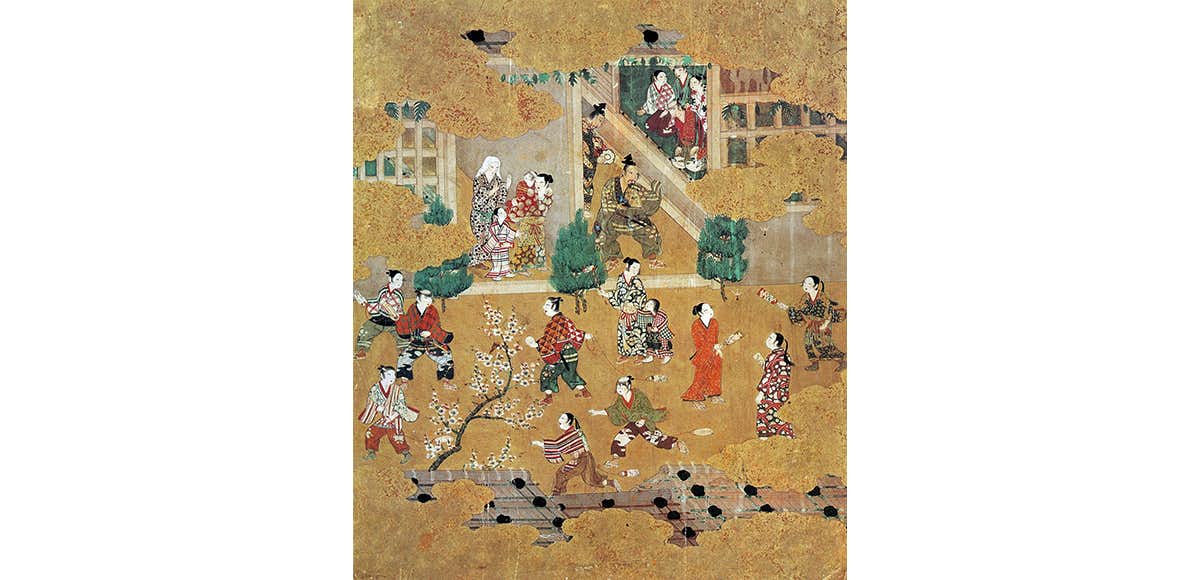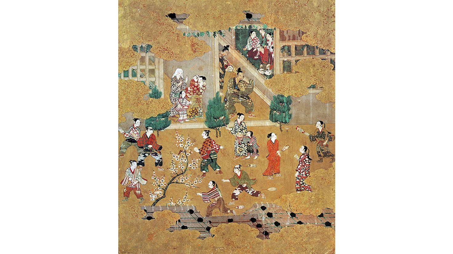 平安時代末期の歌謡集『梁塵秘抄(りょうじんひしょう)』の有名な一節「遊びをせんとや生まれけむ」。いっぽう美術作品でも、古くから主要な画題であった「風俗図」や「遊楽図」に、貝合や蹴鞠、羽子板といった情趣豊かな「遊び」に熱中する人々が描かれている。