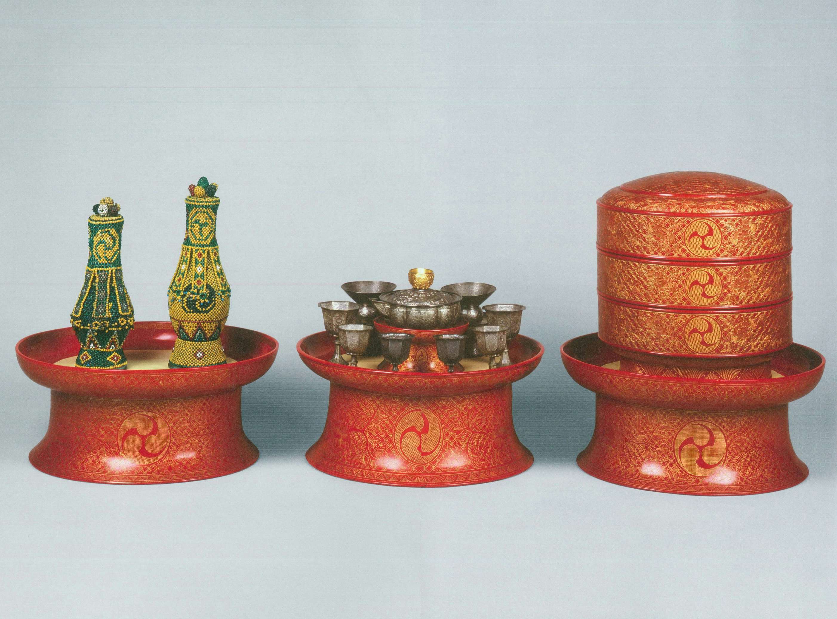 本展では、国宝『琉球国王尚家関係資料』の美術工芸品をはじめ、沖縄県内の美術館・博物館が所蔵する琉球漆器の優品、そして日本有数のコレクションを誇る松坂屋に伝わる紅型衣裳から、琉球王国で生み出された多彩な美を紹介。あわせて岡崎出身の地理学者・志賀重昻が沖縄から持ち帰った、首里城に掲げられていた扁額を展示する。