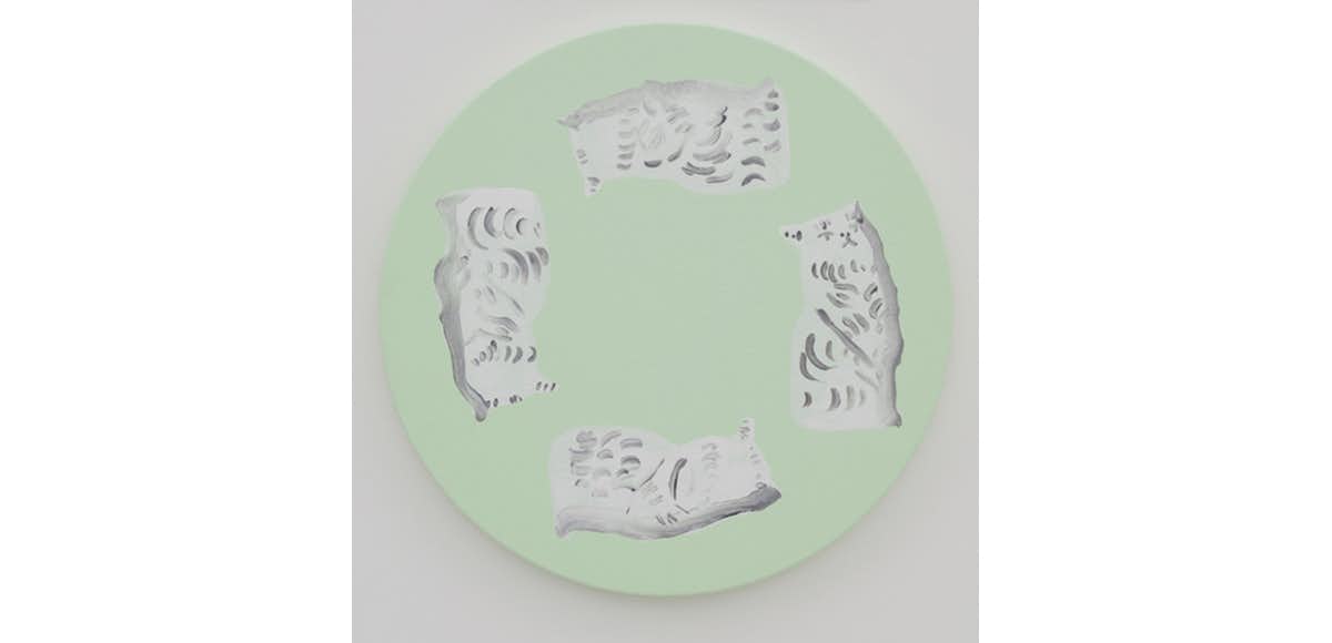 ギャラリーのプログラムに「パターン」という問いかけのテーマが根づくきっかけとなった「here's why patterns」展。その展覧会シリーズの3回目には、モチーフとする人物の生年月日や命日などから導き出された数字をもとに、独自のカラーチャートに基づいて絵画を描く片山真妃、本展で猫の置物を反復させるかのように描いた一連の新作シリーズを発表する南川史門、キャンバスに油彩という伝統的な画材を用いて、布生地のパターンを思わせる作品を制作する八重樫ゆいのほか、ヘザー・クック、ジュリー・ボーフィー、ケイト・スペンサー・スチュワート、ミシェル・ローリングズの7名が参加している。