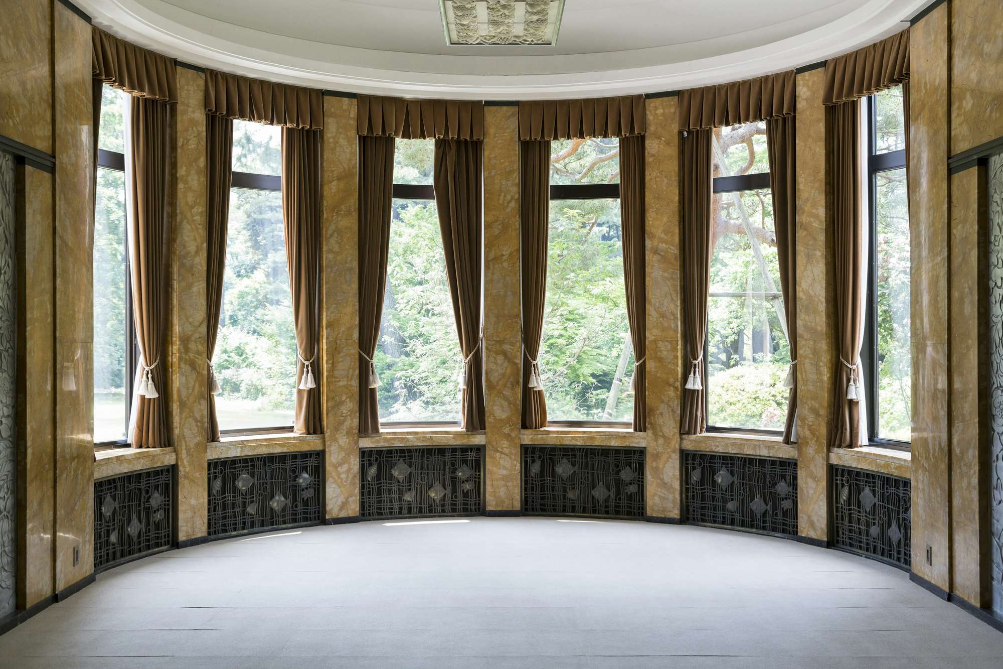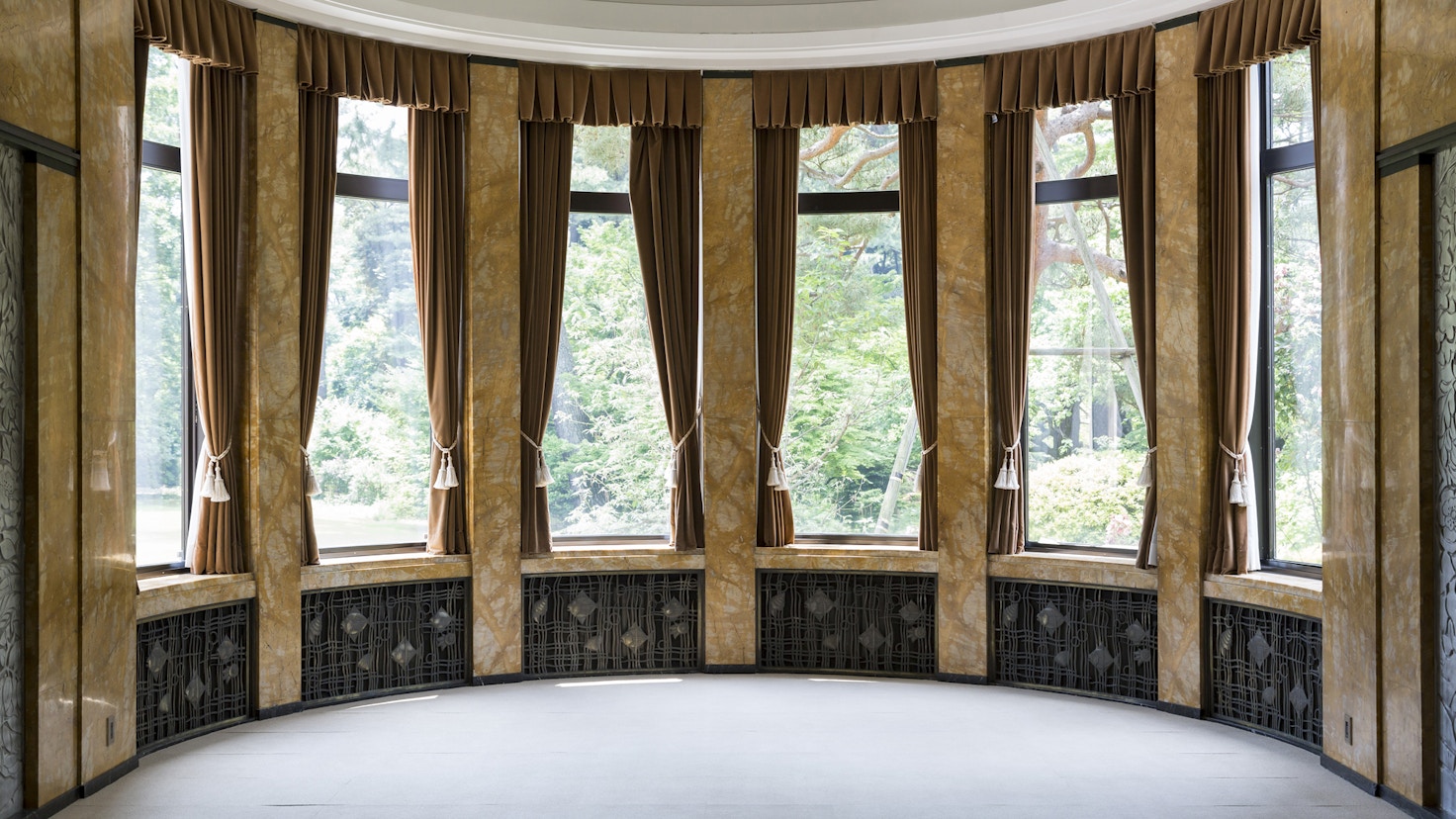 アール・デコ全盛期の最先端かつ一級品の技術・素材がふんだんに取り入れられた朝香宮邸。アール・デコの様式美に魅せられ朝香宮ご夫妻が、主要な部屋の設計をフランス人装飾美術家アンリ・ラパンに依頼し、日本側では宮内省内匠寮の技師、権藤要吉が設計を担当した。