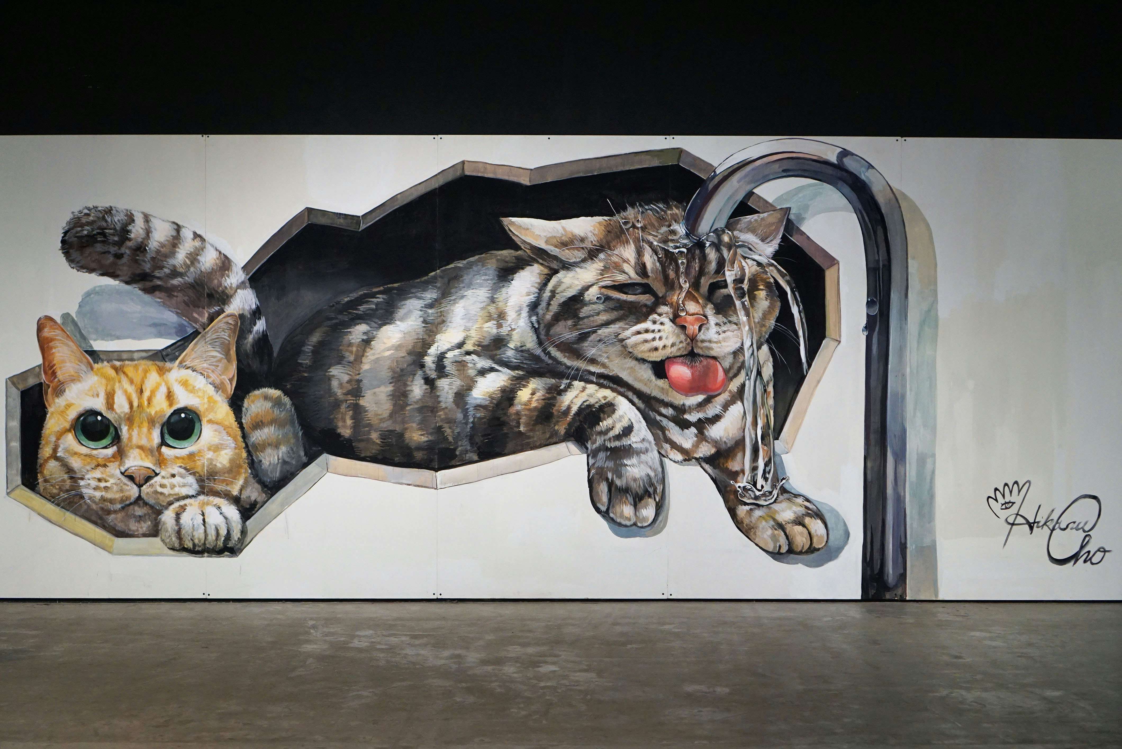 会場では、「お化け屋敷」をテーマにCGと融合した限定映像の公開や、人気猫のちくわとまっぷーちんの作品展示が初登場。また、ボディペイントで話題のアーティスト・チョーヒカルによる約6メートルの超巨大壁画に加え、巨大ぬいぐるみなどの立体作品も展示され、猫づくしの空間を楽しむことができる。