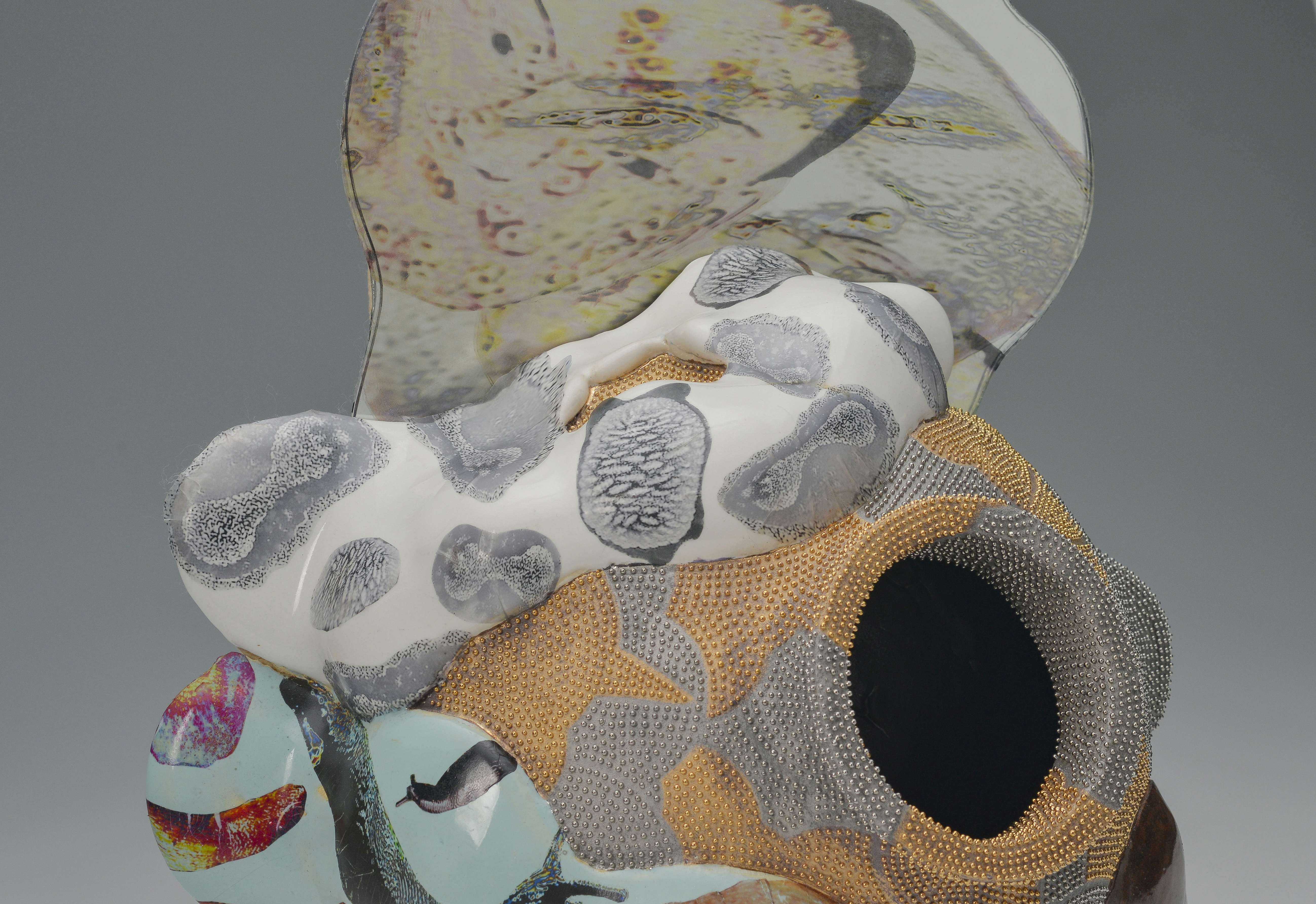 一見するとお菓子やおもちゃを連想させるカラフルでファンシーな外観でありながら、ひび割れや気泡のような表皮をまとった、陶器でありながら生々しく有機的で触覚的な作品を手がける篠崎裕美子。