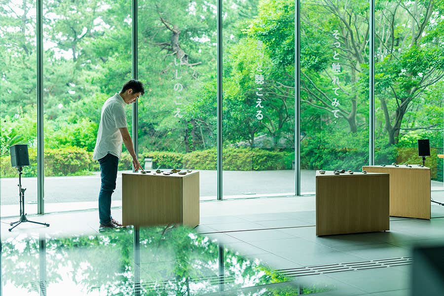 本展では「音にふれる」をテーマに、石に触れてその声を聞く《いしのこえ》や、木のオブジェに触れることで参加者間の音による対話を試みる《ステラノーヴァ》など、MATHRAXの作品を展示。見る、聞くだけでなく、手で触れる作品を通して、言葉とはまた異なった不思議なコミュニケーションを体験できる。