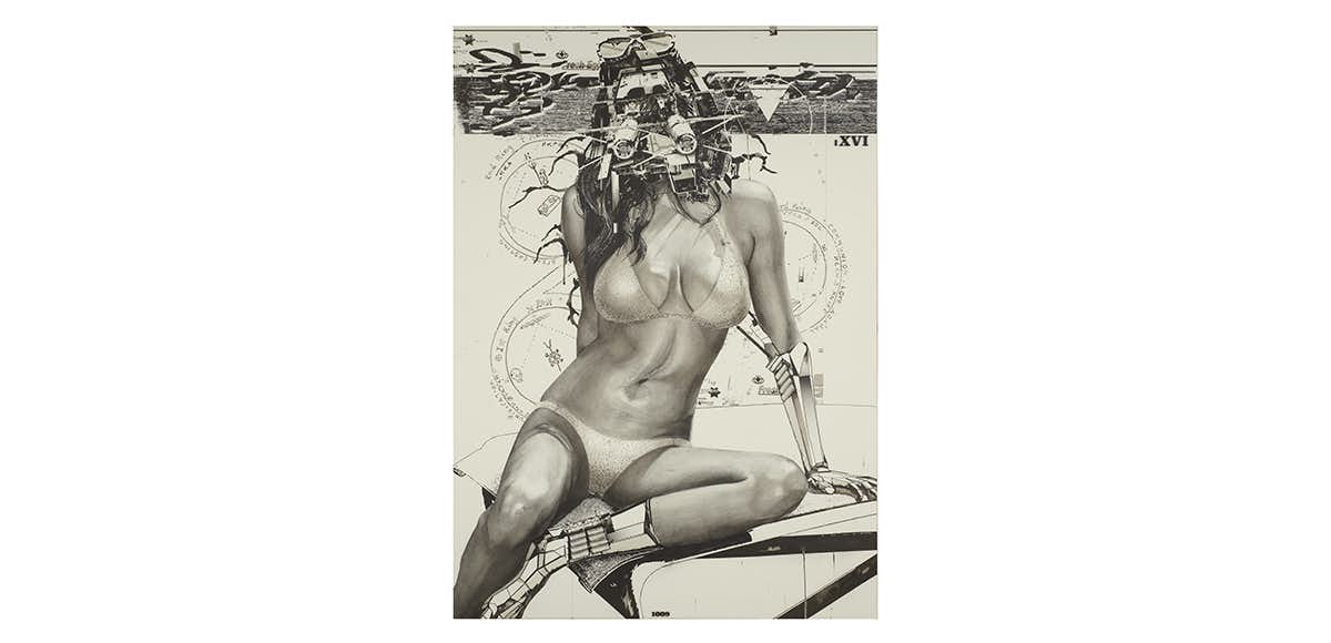 佃弘樹は1978年香川県生まれ。映画『マッドマックス』や『ブレードランナー』などに描かれる「事後の世界」から影響を受け、ドローイングや写真の集積を組み合わせたデジタルコラージュの技法でパラレルワールドを表現してきた。
