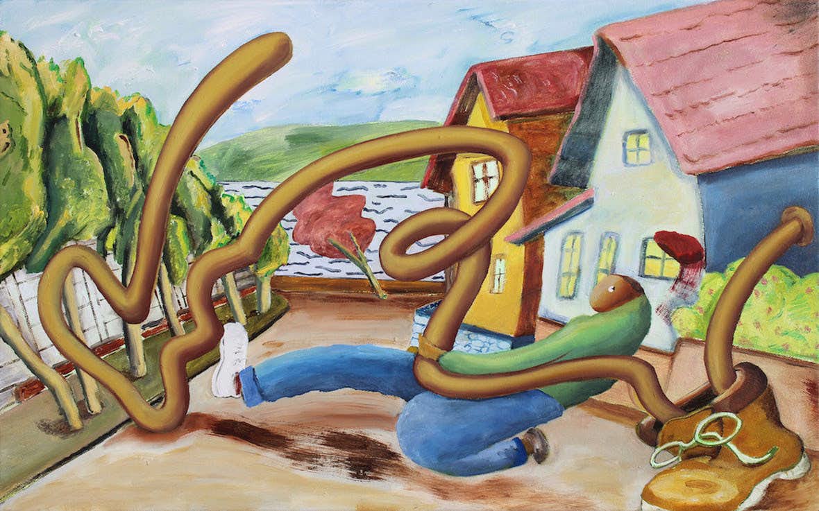 本展では、2016年頃より「人物に焦点を当てずに風景画のような絵を描いてみたい」という考えから取り組む「歩くバット」シリーズから、新作ペインティングを発表する。