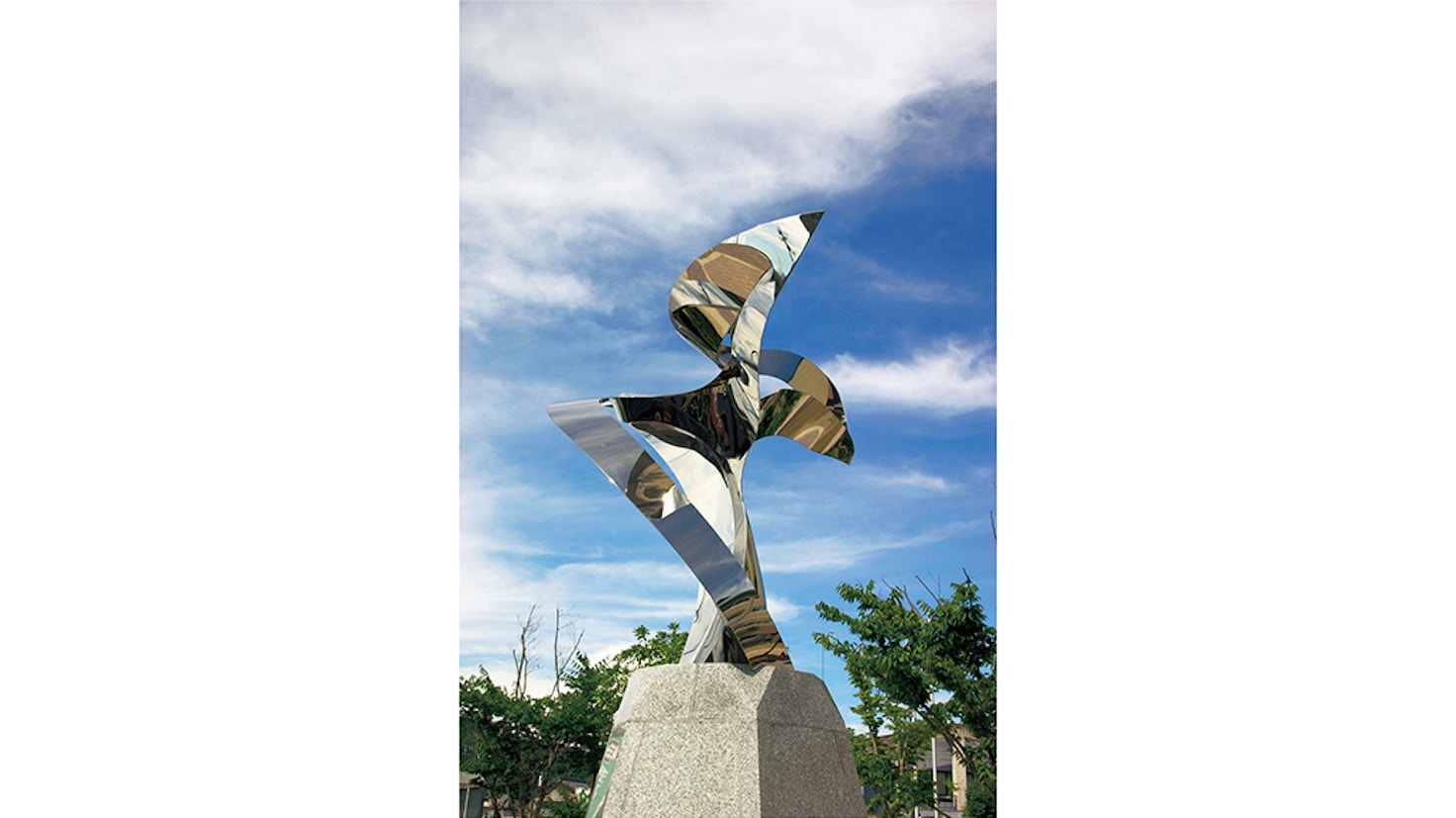 その作品は、ギリシャのアポロ神殿隣に位置するデルフィー・ヨーロッパ文化センター(2005)、アテネのアメリカン大学(2009)、松江市宍道湖畔岸公園(2010)に恒久設置され、日本では福山駅前広場で福山市のシンボルともなっているモニュメントを見ることができる。
