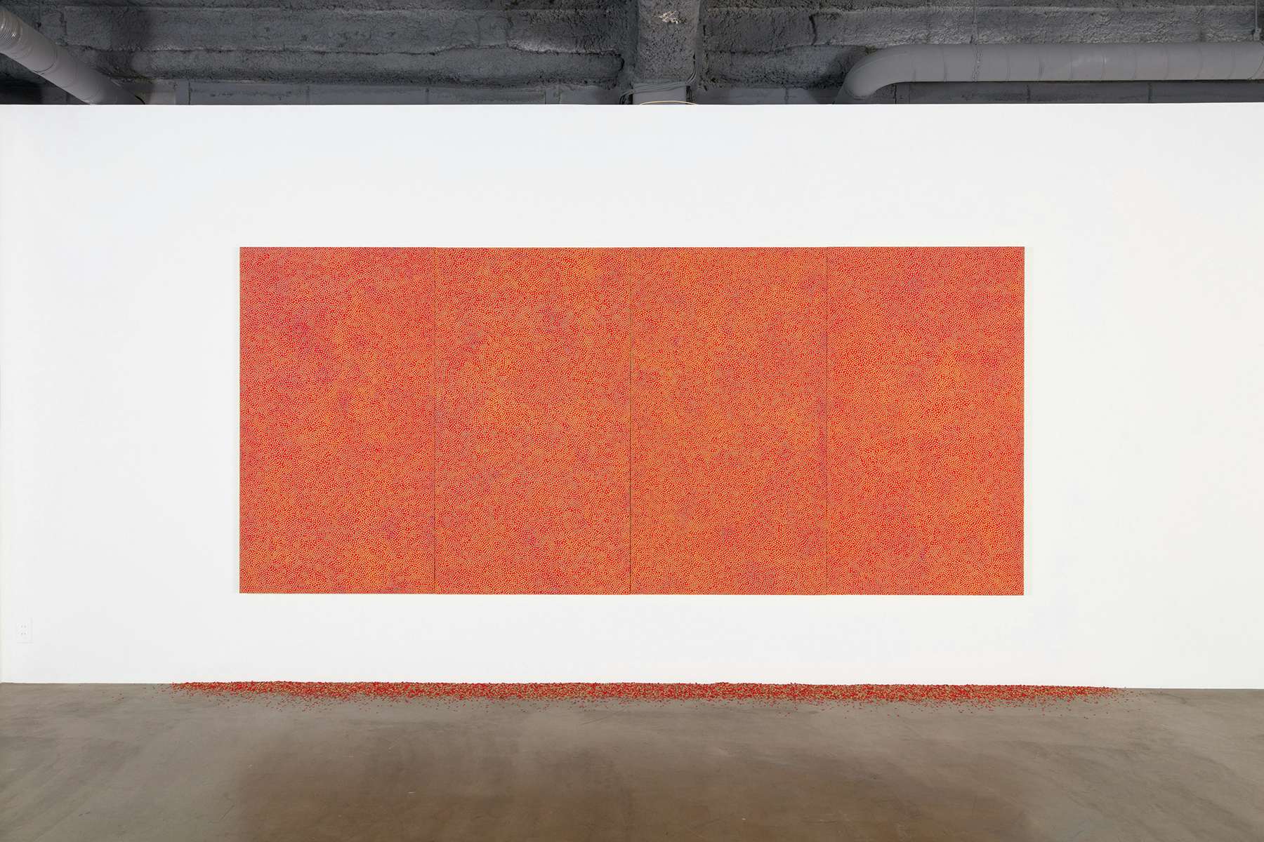 鈴木がつくり出す画面は、作家の息づかいすらも感じ取れるほどの鮮明な行為の痕跡を鑑賞者に提示し、同時に「彫る」という反復行為によって顕在化した絵具の断層は、作家が作品と対峙した膨大な時間を物語っている。