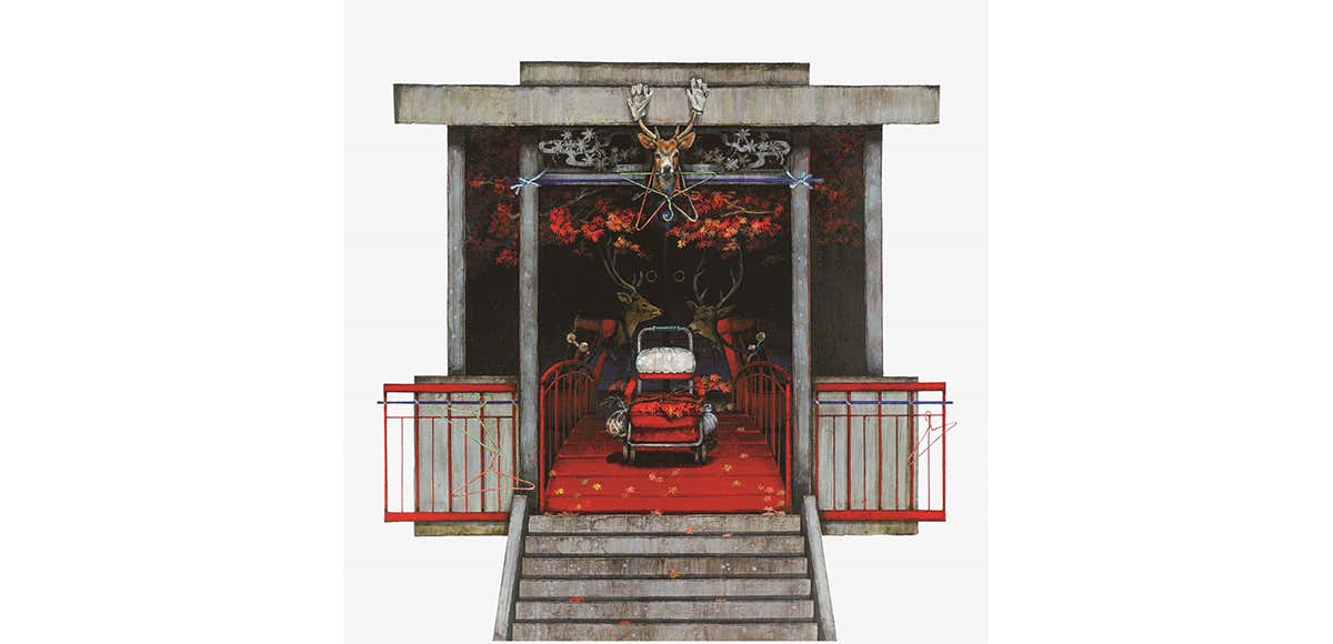 齋藤は1973年東京都生まれ。「博物学への興味は新鮮なビジョンをもたらした」と自身で語るように、初期の作品《毒花図鑑》(1993)や《日本花色考》(1995)では美術と文学とのあいだで揺れ動いていた自身の心理を花に託し、図鑑のかたちで表現。その後、幼少期を過ごした団地の記憶をもとに、箱型の団地の窓を描いた一連のシリーズに取り組んだ。近年は図鑑や窓といった形式から脱し、日本各地への旅を重ねながら収集したイメージと、過去と現在の記憶からなる《密愛村Ⅲ・Ⅳ》(2011、16)、《野火賊》(2015)を制作している。
