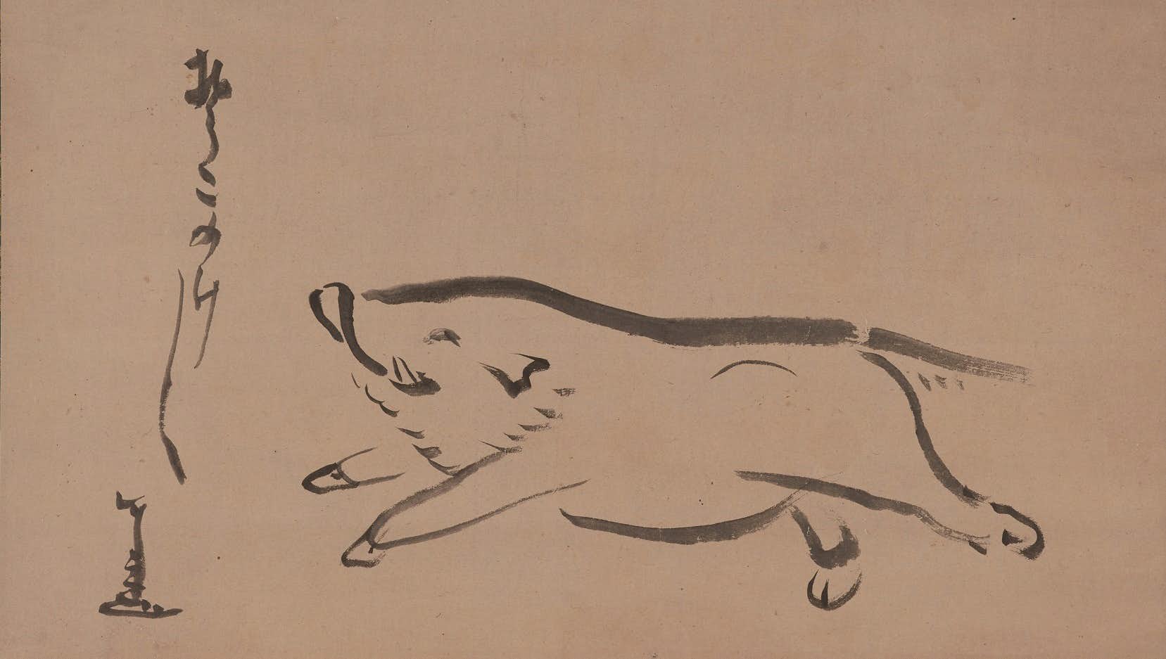 本展は、福岡市で証券会社を経営していた小西友次郎氏が収集し、子息の昭一氏から寄贈された福岡市美術館の小西コレクションの全容を示す初の機会。画業の初期から晩年までをたどる作品のほか、茶器や文房具などの日用品を含む55点を展示し、そのコレクションの幅広さから、仙厓のすべてを知りたいと願ったコレクターの思い、「博多の仙厓さん」の新たな一面に触れる。