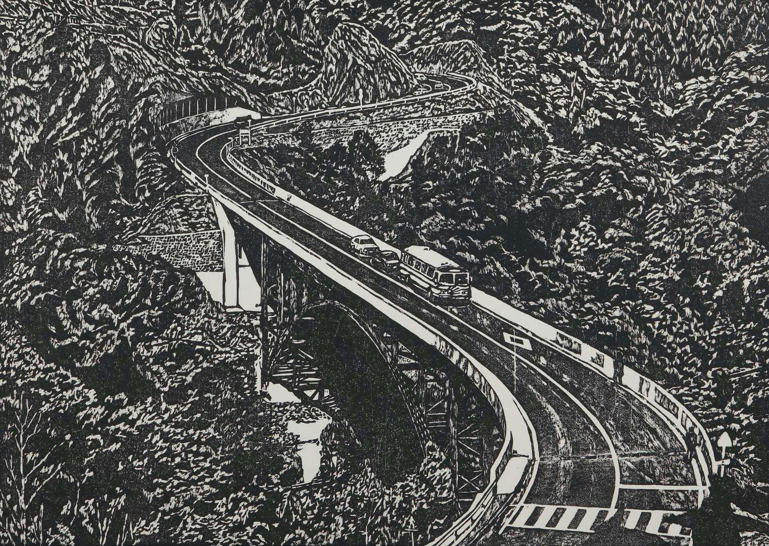ダイナミックに表現された、黒一色の木版画を制作するアーティストの風間サチコ。近現代の社会的な事象への関心を起点とした作品は、過去の事例の徹底したリサーチに基づいており、批判的な視点を持ちながらもコミカルな表現によって多面性を備えている。