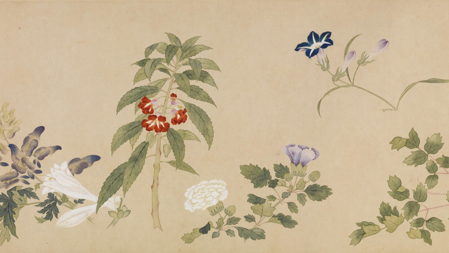 本展では、花鳥画がジャンルとして成立する前の、古代中国の青銅鏡から、南宋以降の着色花鳥画と水墨花鳥画を経て、この双方を融合させた日本の狩野派、さらに明清時代の花鳥画の進退の作例、そして江戸後期の円山四条派や南画が達成した軽快な花鳥画作品を紹介する。