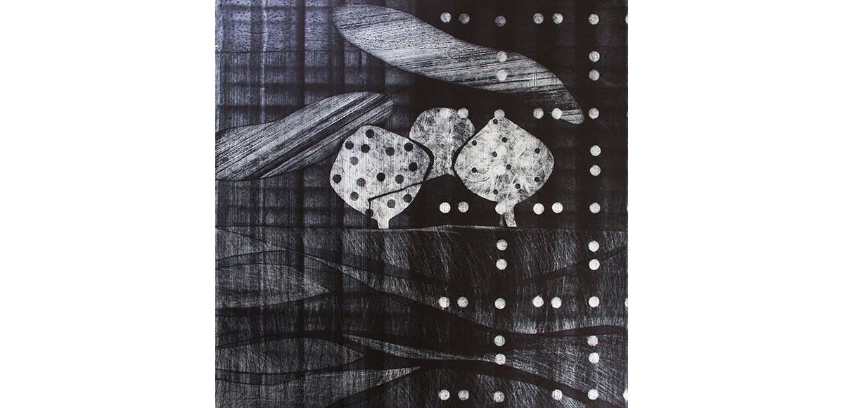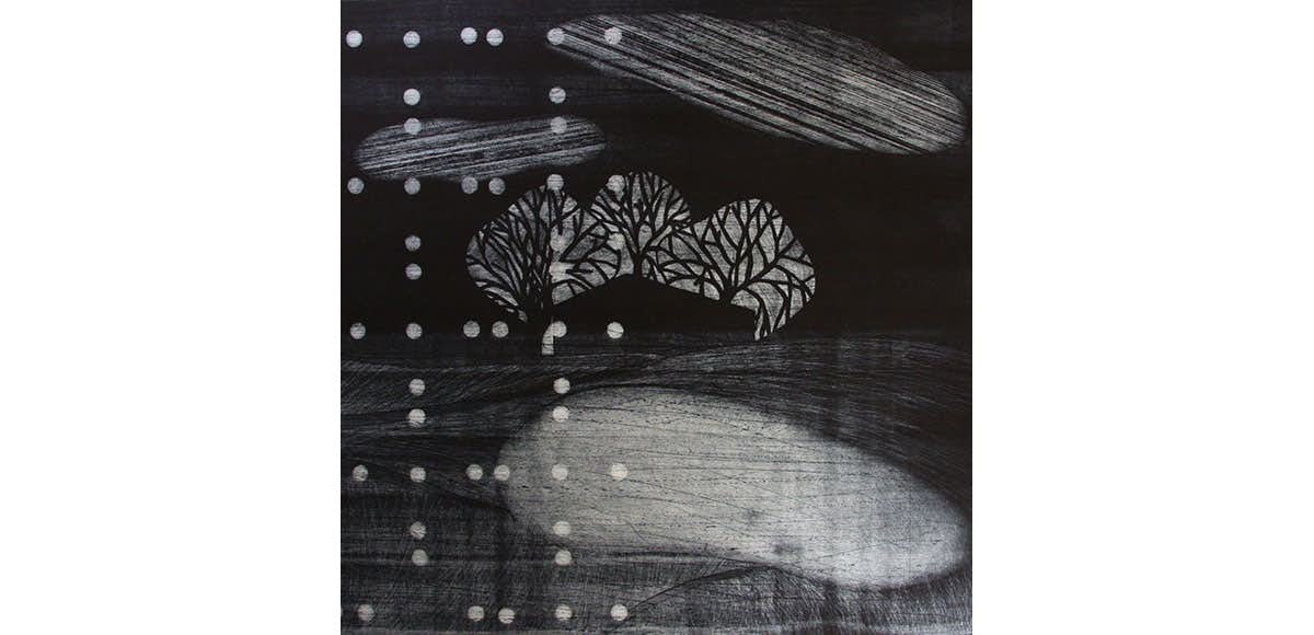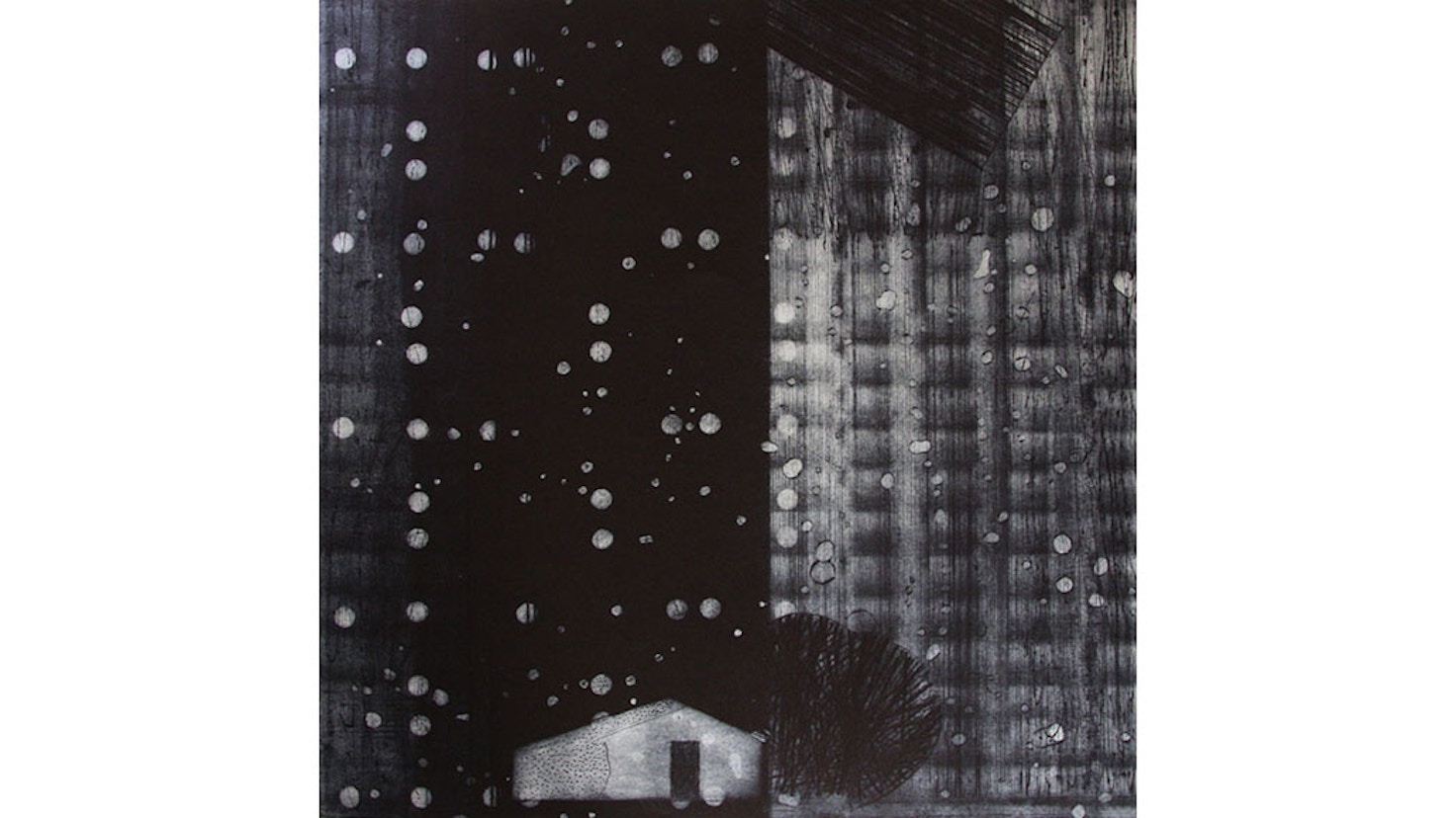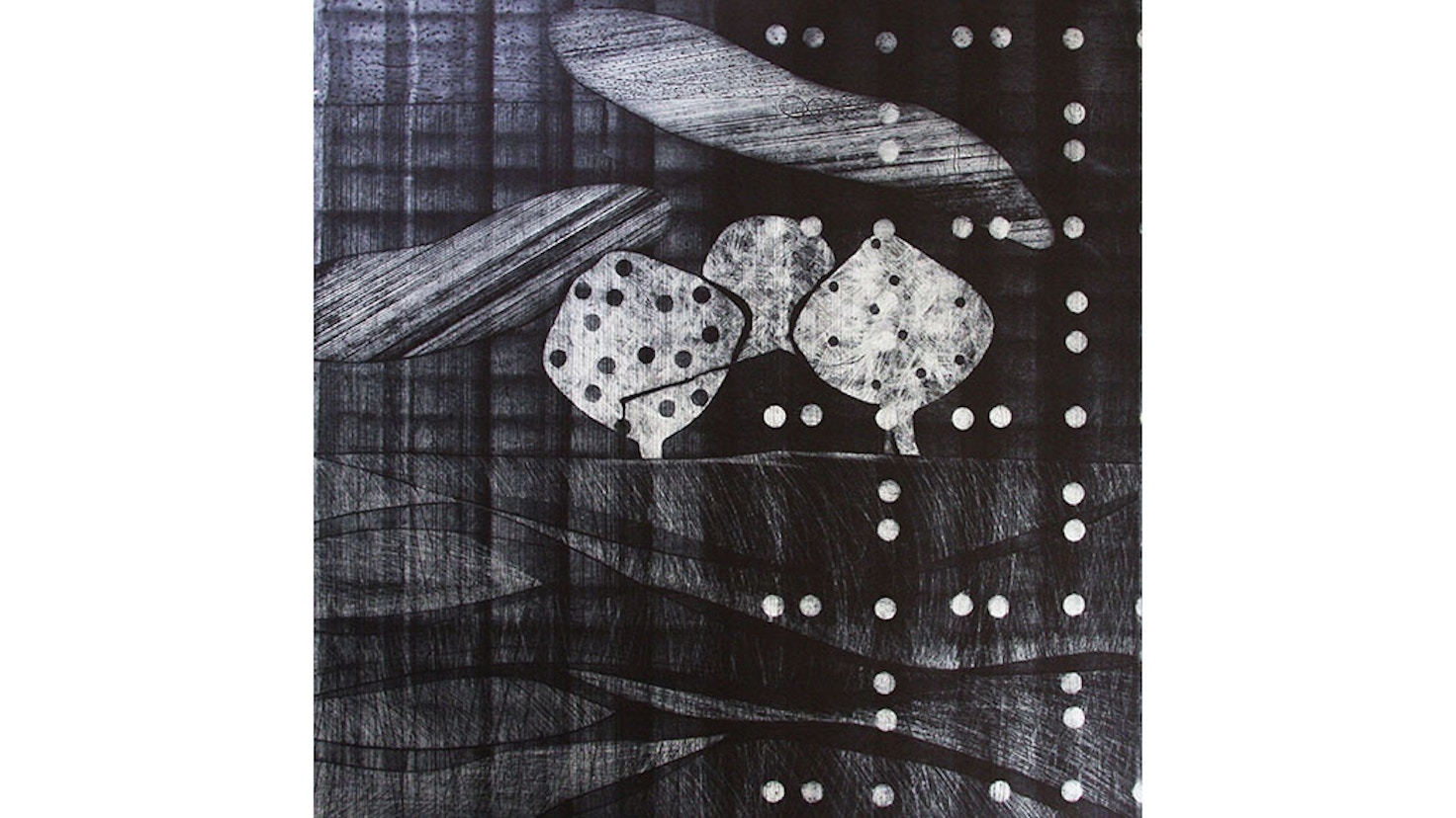海老塚は1951年神奈川県横浜市生まれ。79年多摩美術大学大学院美術研究科デザイン専攻修了。現在、同大学教授。木や鉄、水を使った彫刻作品から出発し、90年代末から版画の制作を本格的に開始した。それぞれ並行して精力的に取り組み、個展「眼差しの現象学―身体・素材・記憶」展(神奈川県民ギャラリー、2002)、「混合の記憶―水と風の運動により」展(下山芸術の森 発電所美術館、富山、2007)などで発表。また今年には、「それぞれのふたり 池田良二と海老塚耕一」展(世田谷美術館)が開催された。