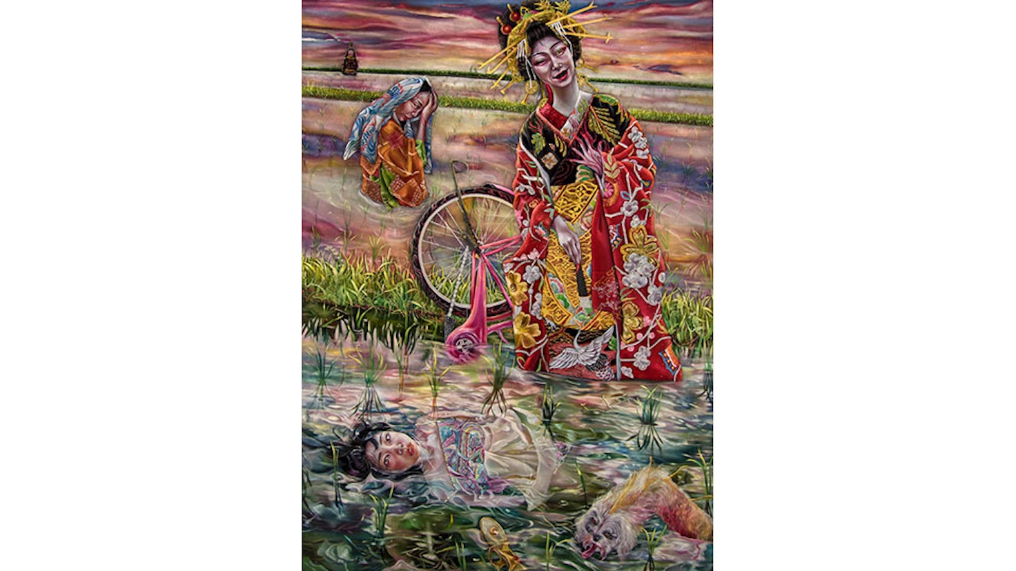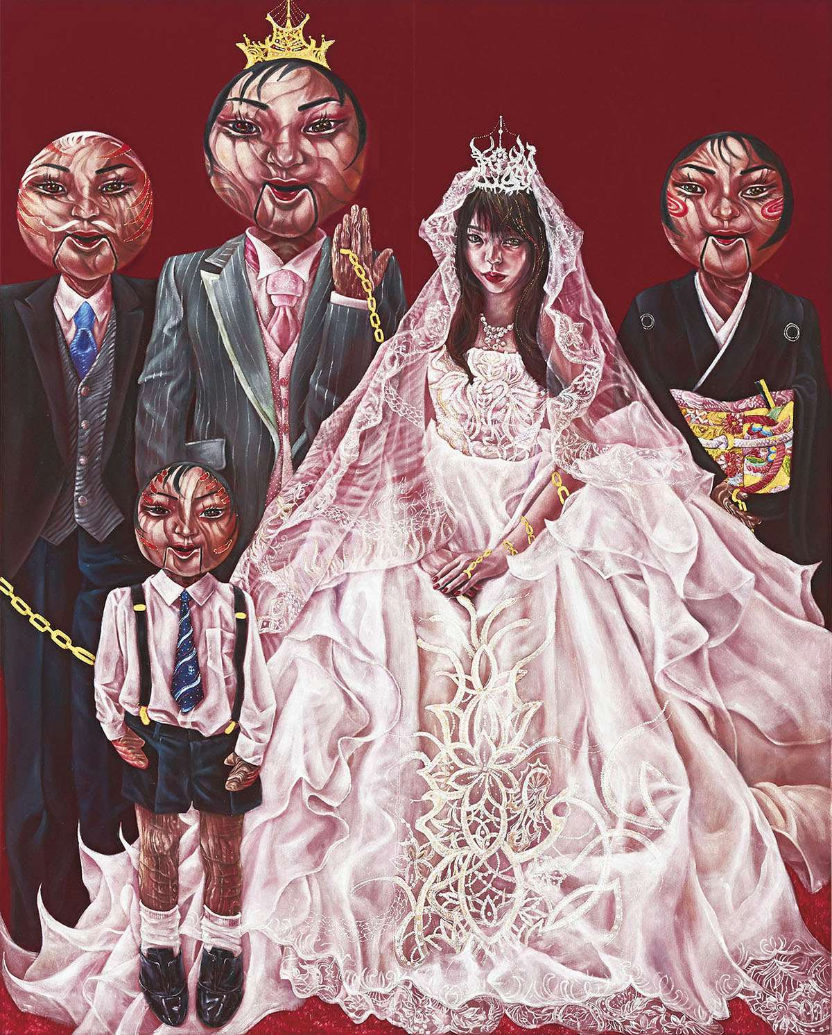谷原は1989年埼玉県生まれ。2015年絹谷幸二賞、2016年VOCA奨励賞、17年五島記念文化賞新人賞受賞。キャンバスの代わりに、黒いベルベットの布を張り込んだパネルを支持体として、油彩をベースにスパンコールやグリッターなどをあしらった独自の絵画を制作。作品に出現する異界、悪夢、幽霊、妖怪、怨念、憑物、暴力などは、この世界の裏側に平行して存在するもうひとつの現実として丁寧に描いている。