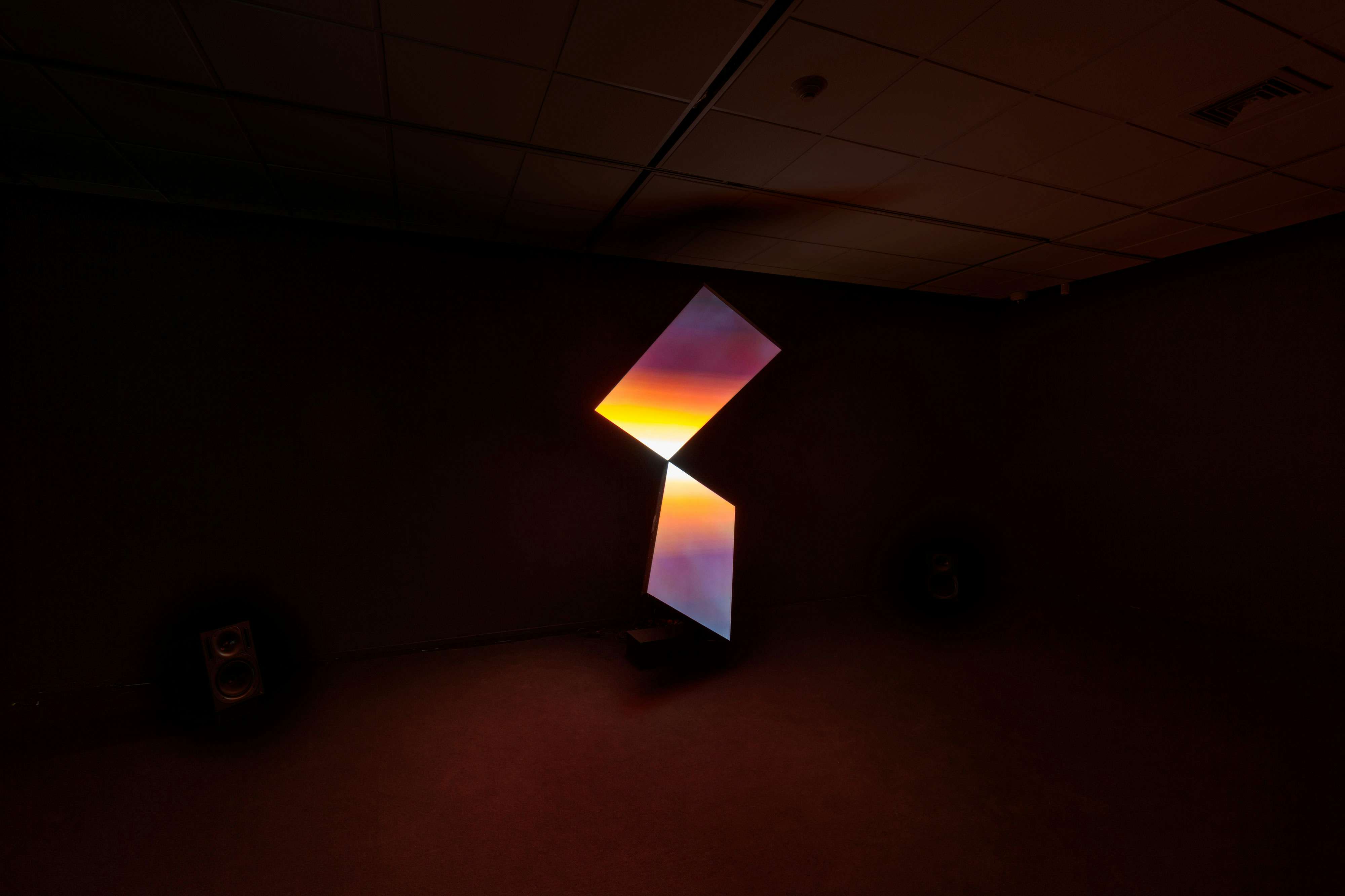 黒川の作品の特徴のひとつは、作家自身も言及するように、時間軸を含む彫刻的な成り立ちをしていること。音とビジュアル、そして特有のフォルムやコンポジションを持つ造形、そこに鑑賞者の動きや個人個人のインプレッションが合わさることで、さらに新たな感覚をもたらす。そして黒川の作品を構成する音は、自然や社会にあふれる音や独自のアルゴリズムによって生成された音、それらの重なり合うスペクトラムな存在の音など、多くの音はある種のシンフォニーとなって、私たちの意識に新たな展開を予感させる。