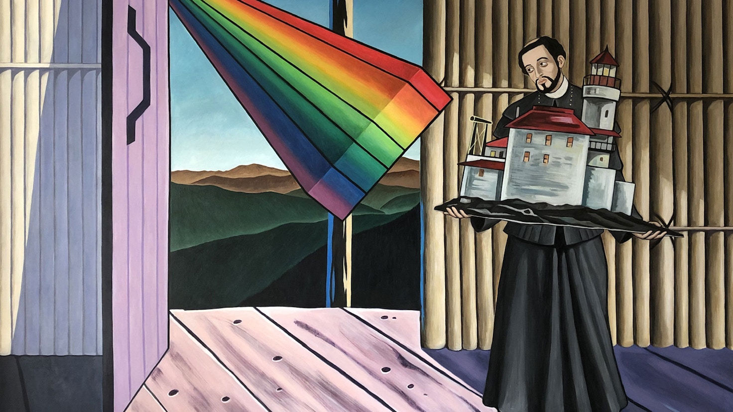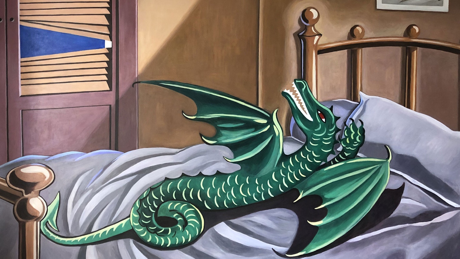 戦前に生まれた画家に擬態することについて、「架空の略歴を参照しながら、当時実際にありえたかもしれない作品を作り続け、制作を通して架空の人物が徐々に肉づけされていく。現実の私が死んだ後に歴史にエラーを忍び込ませたい」と話すユアサ。本展では、150号の大型作品を中心に、60年代の社会事象をとらえた作品や、架空の「ユアサエボシ」の個人的体験に焦点を当てた新旧作を展示する。