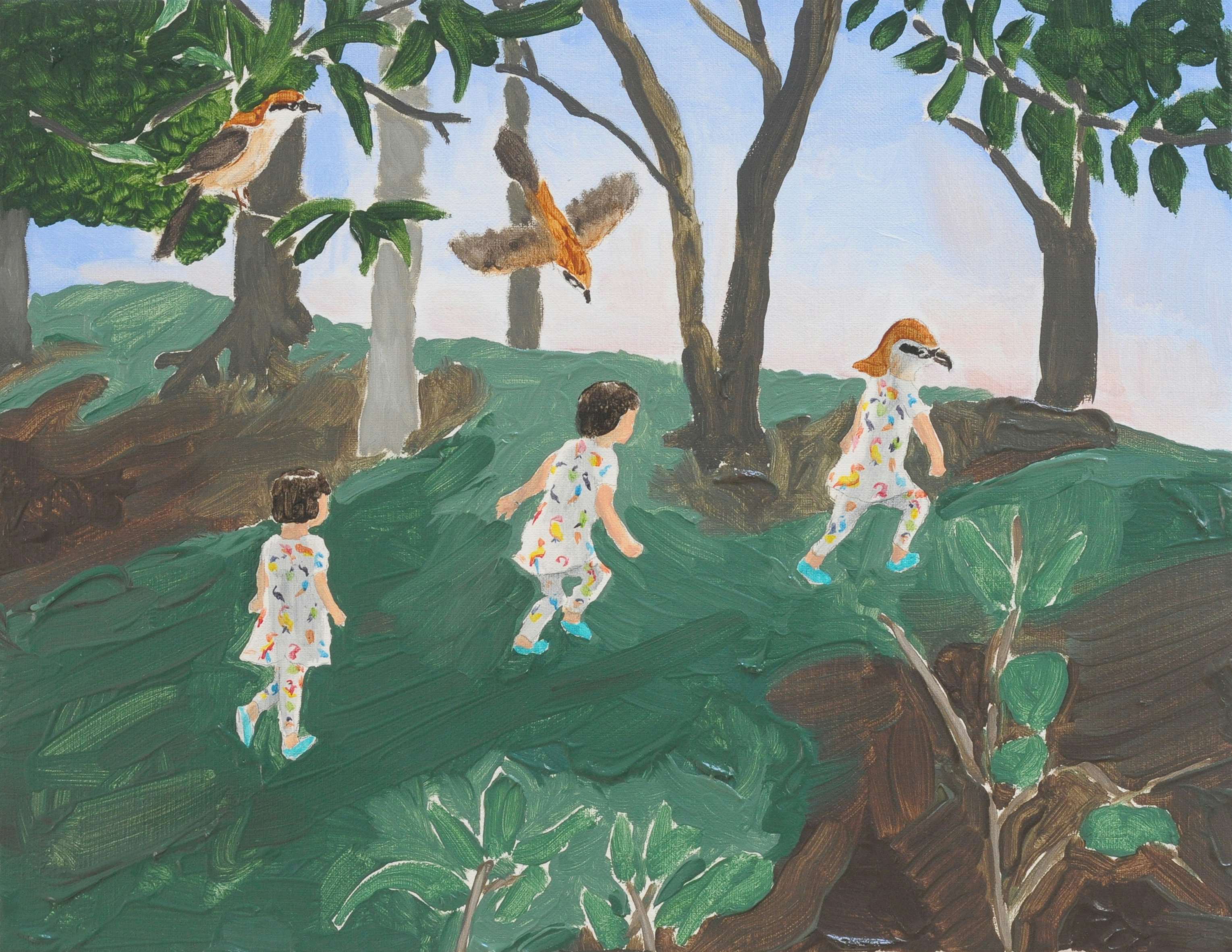 平川は1987年高知県生まれ。近年は「カタストロフと美術のちから」(森美術館、2018)、や「1940’s フジタ・トリビュート」(東京藝術大学陳列館、2018)などに出展し、失われていく歴史の記憶を黒い絵具で描いた絵画で注目された。いっぽうで、「どこから来たか、どこへ行く」(2011〜)や「森の茶会」(2017〜)のシリーズでは、自然の摂理のなかの人間の存在とは何かをテーマとして制作に取り組んでいる。