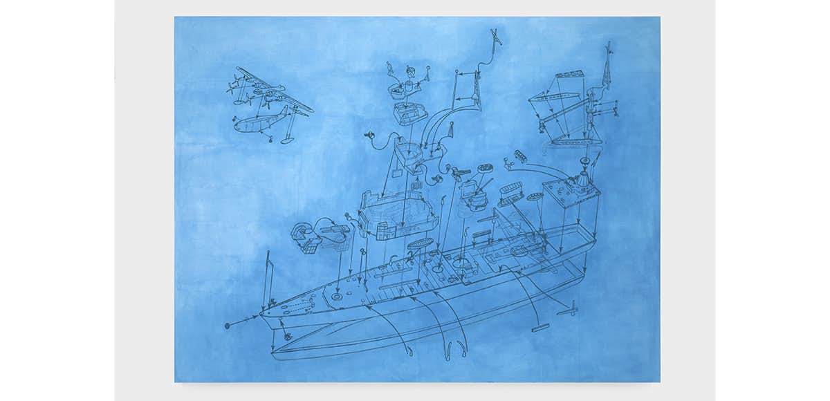 90年代後半頃から、隠れた戦争の歴史を掘り起こす探索の場として太平洋という場所に着目してきた柳。プラモデルキットの縮尺を拡大させた鋳鉄製の《アキツシマ50・I/II》は、戦争に革命をもたらした戦艦建設という技術的進歩を示唆する、そのパーツの細部一つひとつを物的に浮かび上がらせることで、暴力の集団的歴史についての再考を提起する。