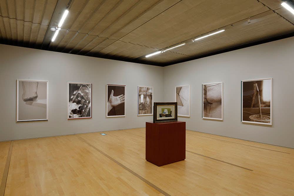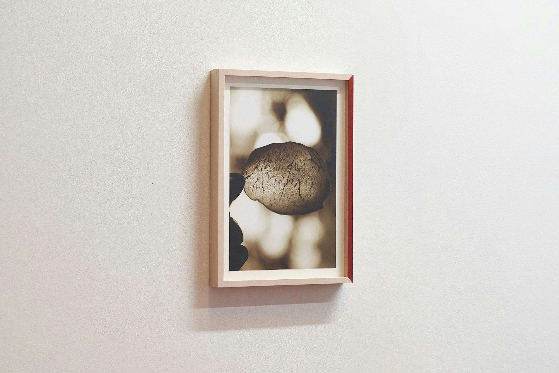 本展で展示される《事のもつれ》は、棚から額が落下する様子を撮影したもので、私たちの時間感覚にひとつの違和感を投げかける作品。もういっぽうのシリーズは、カラーで撮影された写真をセピア調にし、かつてその画像のなかにあった特徴的な色を額に着彩したもの。写真がとらえる「過去」と、着彩されたものとしての額の「現在」を関連づける。