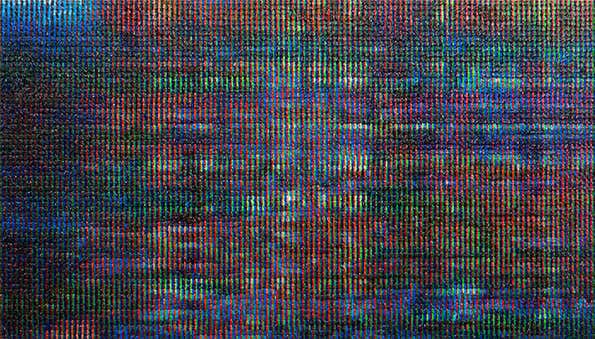 ディスプレイの発光を絵具で再現した「ピクセルペインティング」を手がけるアーティスト・香月恵介の個展が開催中だ。