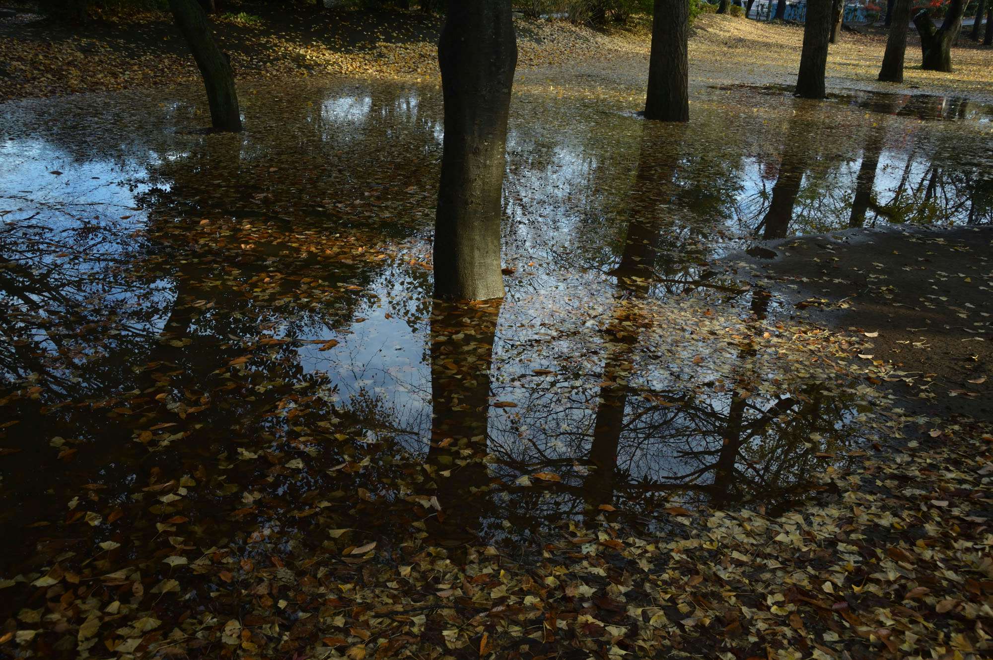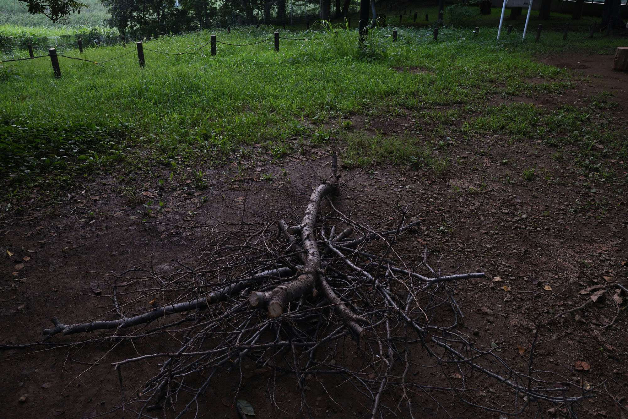 本展では、作家が子供の頃に住んでいた街の大きな公園にまつわる作品《Empty park》を発表。公園の奥の背の高い葦や大きな木々に阻まれ、誰も近づかない場所にできるという「見えない池」、水位が高くなると赤く明滅する警告灯、それらの傍に佇む公園の風景を、写真と言葉で追体験させる。