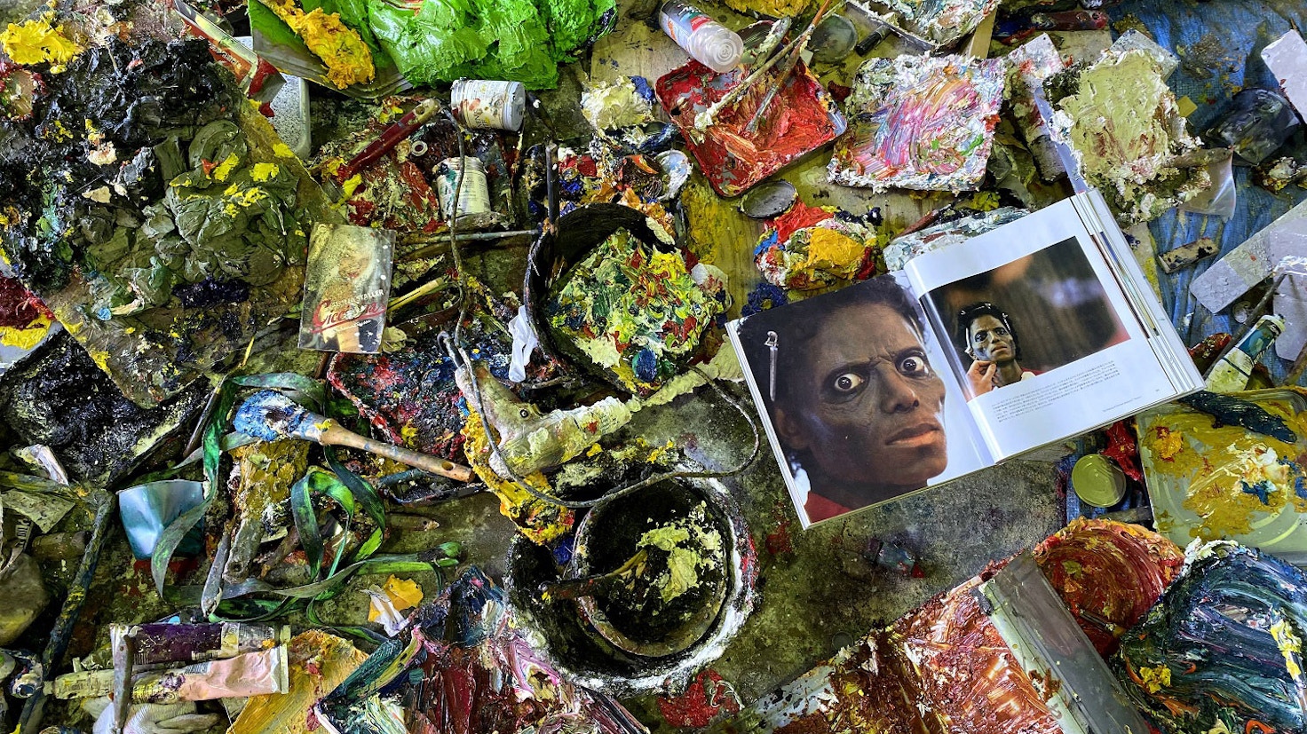 本展では、初期から描いているマイケル・ジャクソンのほか、ドナルド・トランプ、ミラ・ジョヴォヴィッチ、マイケル・ジョーダンなどの著名人をモチーフとした新作を中心に発表。大量の絵具と豪快な筆致によって立体のような質感を生み出し、従来の肖像画では描かれない「横顔」を見せる。