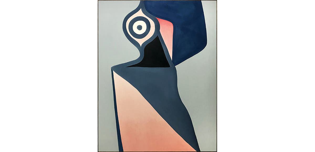 近年は、正面を見据える「目」を描き込んだシリーズを制作。それまでの作風を大きく変化させ、ミニマルで建築的なアウトラインに、粉末と液体顔料を組み合わせた独自の塗料を用いて、優しく深みのある色彩で描いている。
