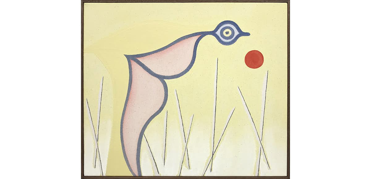象徴的な「目」を持つフォルムについて、「必ずしも鳥ではない。鳥を描きたい訳でもない。ただ古代から続く彼らの進化過程における造形美に魅了されてきた」と語るマイラー。作品はどこか静けさを漂わせ、見る者の内面に迫る。