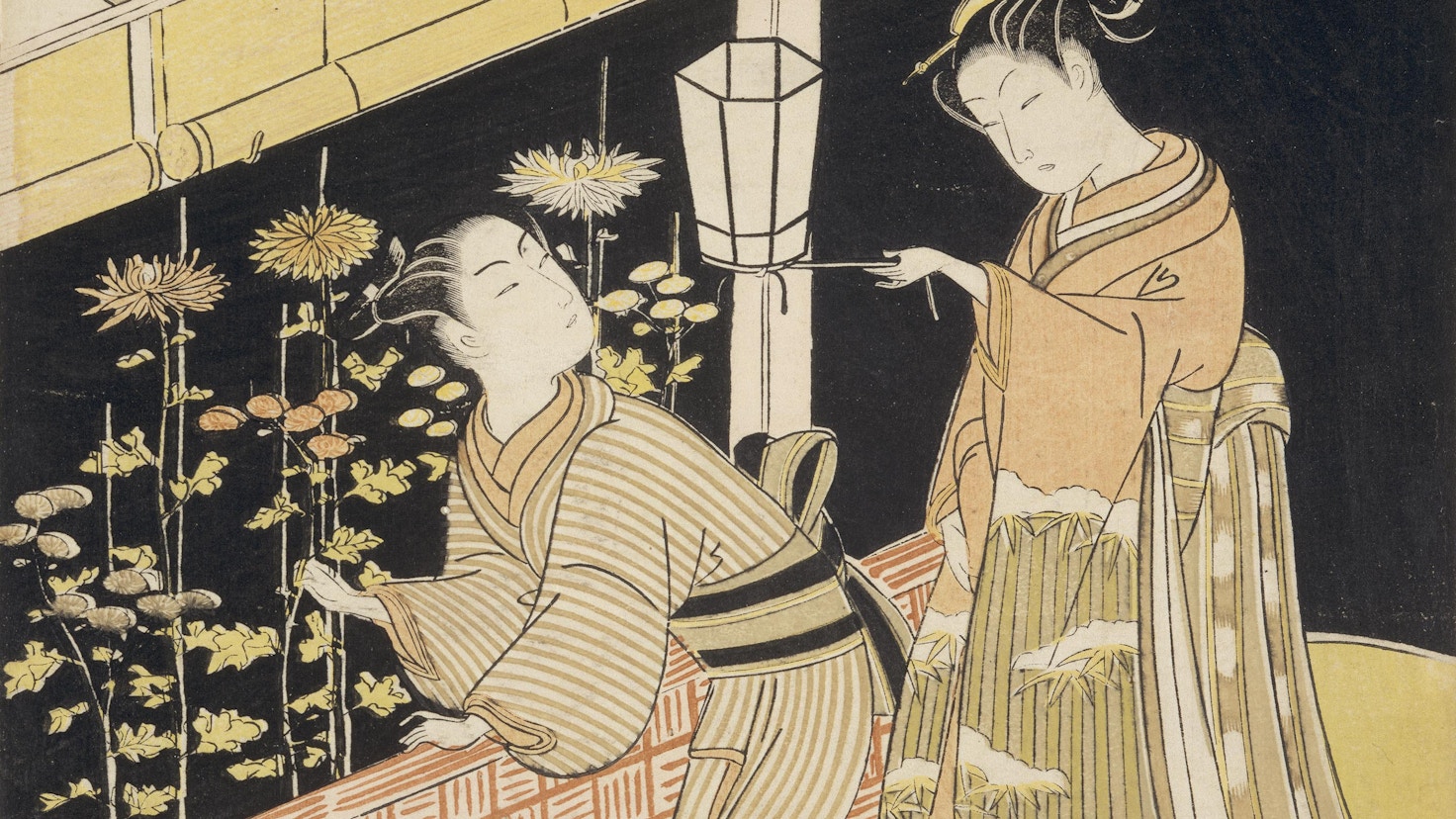 錦絵誕生の頃に第一人者として活躍した浮世絵師、鈴木春信(1725?-70)は、若い恋人たち、母と子、さりげない日常風景、古典主題から発想された見立絵・やつし絵など、詩的で洗練されたイメージを豊かに表現した。