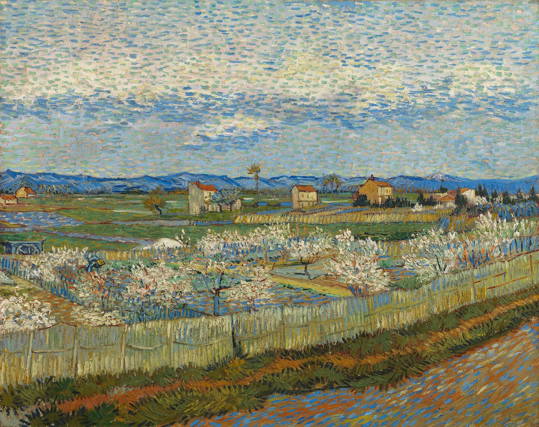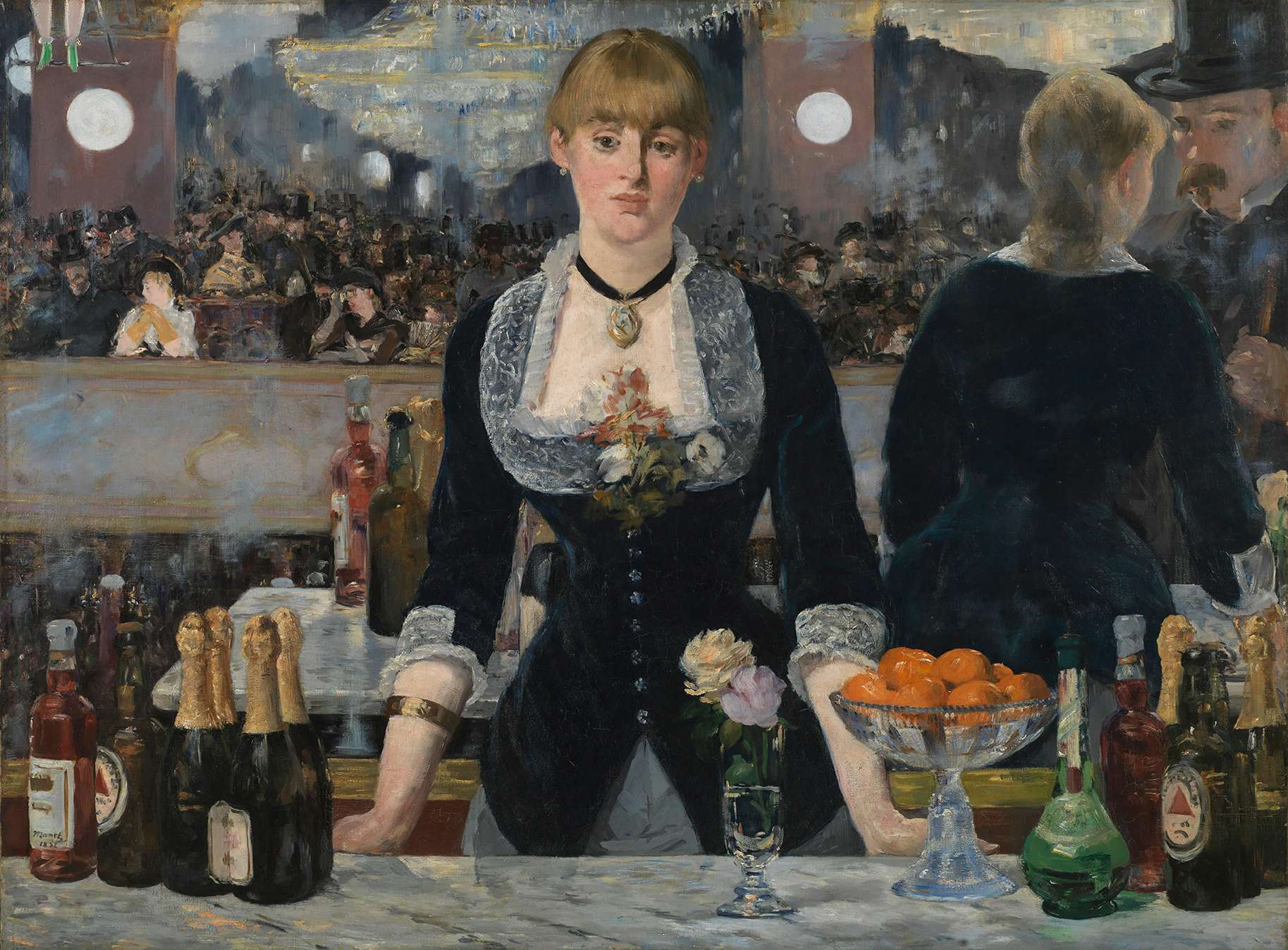 出品作は、日本の風景のようだと語られたゴッホによるアルルの風景《花咲く桃の木々》、19世紀後半の近代都市パリの風俗を描いたルノワールの《桟敷席》、そしてマネの最晩年の傑作《フォリー=ベルジェールのバー》など名品揃い。