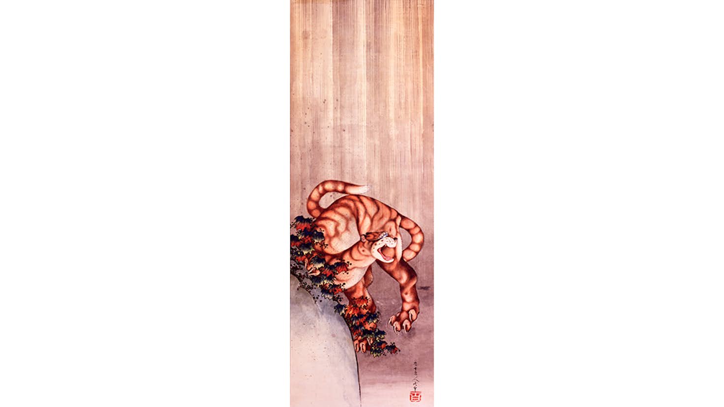 なかでも注目したいのは、葛飾北斎の《雨中の虎》とその娘・応為による《吉原格子先之図》の共演。《雨中の虎》は北斎の没年に描かれた傑作であり、2005年にフランスのギメ美術館に所蔵される《龍図》と対になることが発見されたことでも知られる。