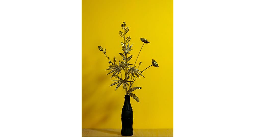 現在は僧侶とアーティストを両立させながら活動。現代では違法薬物とされているいっぽう、神道の祭祀の道具として重宝される「大麻」の葉をモチーフとした木彫、また陶器や骨董品のガラスなど、自らが属する文化や社会に内在する観念・価値に疑問を投げかける、コンセプチュアルな作品を制作してきた。